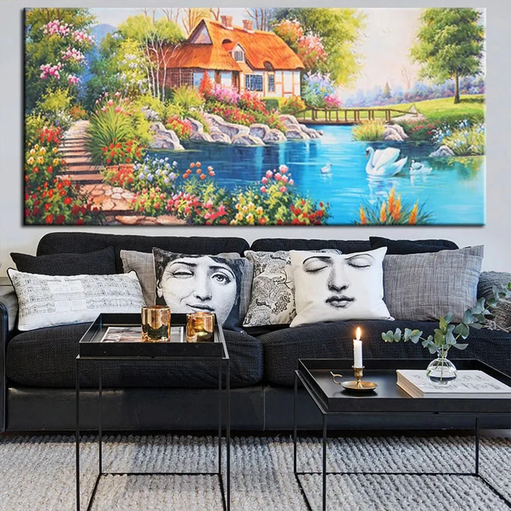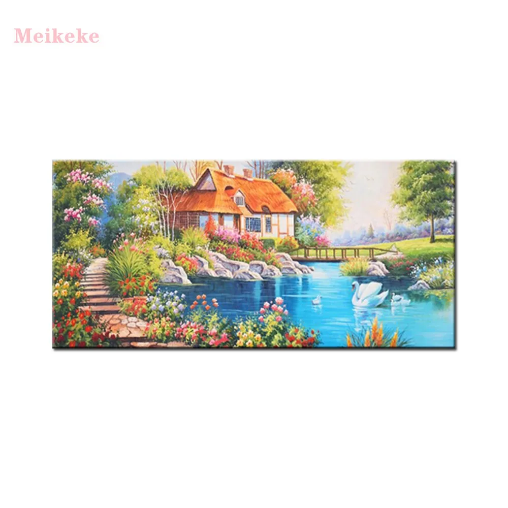 5diy алмазная живопись Европейский Сад Коттедж Алмазная мозаика Новые полные квадратные картины Стразы ландшафты озеро лебедь декор,