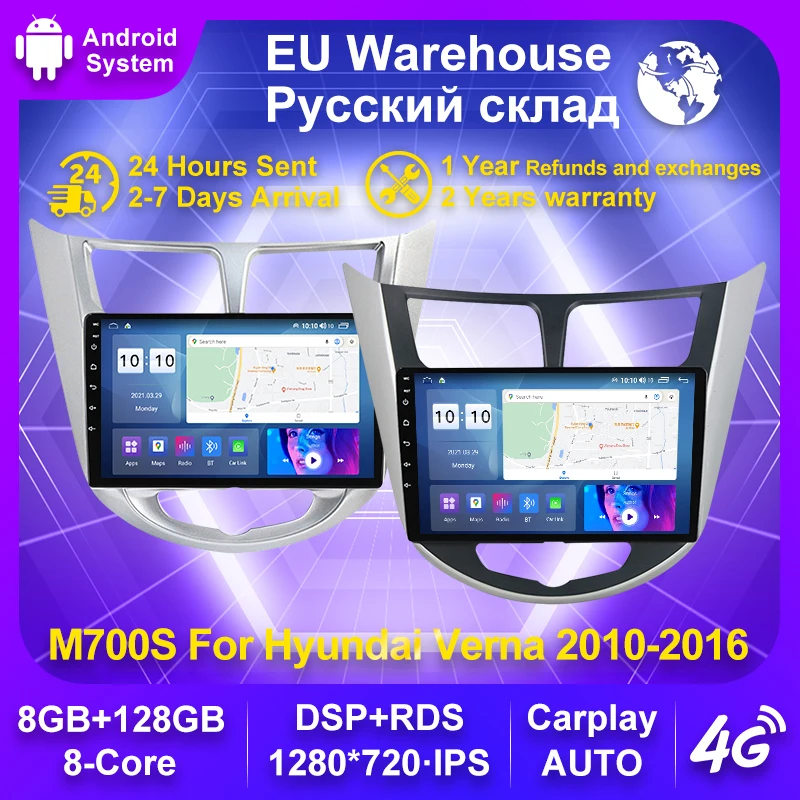 Автомагнитола 2 din, 8 ГБ + 128 Гб, Android 11, мультимедийная система для Hyundai Solaris accent Verna 2010 2011-2016, GPS Carplay, Android, авто DSP