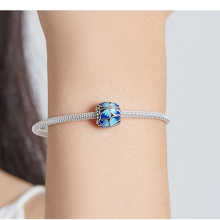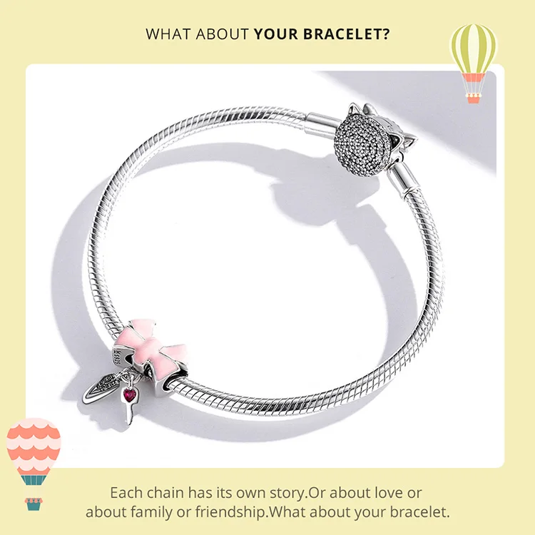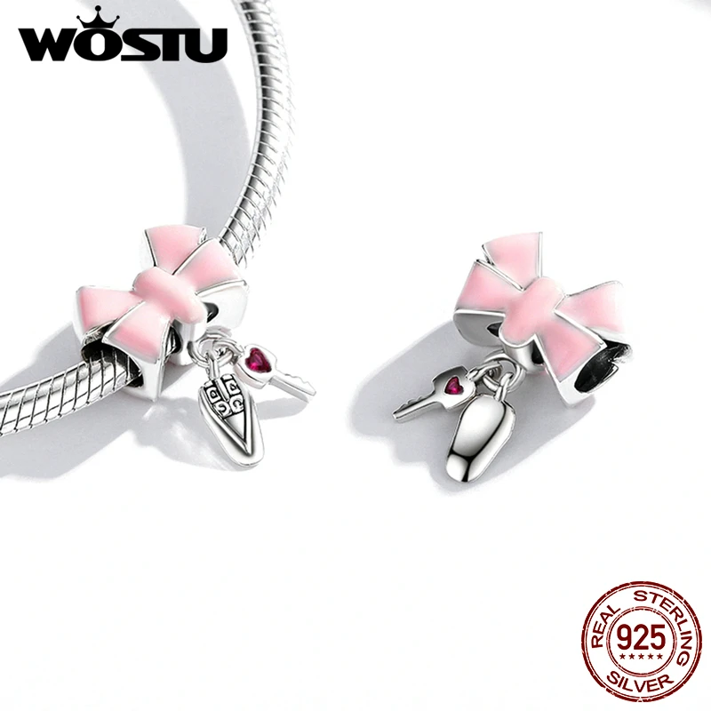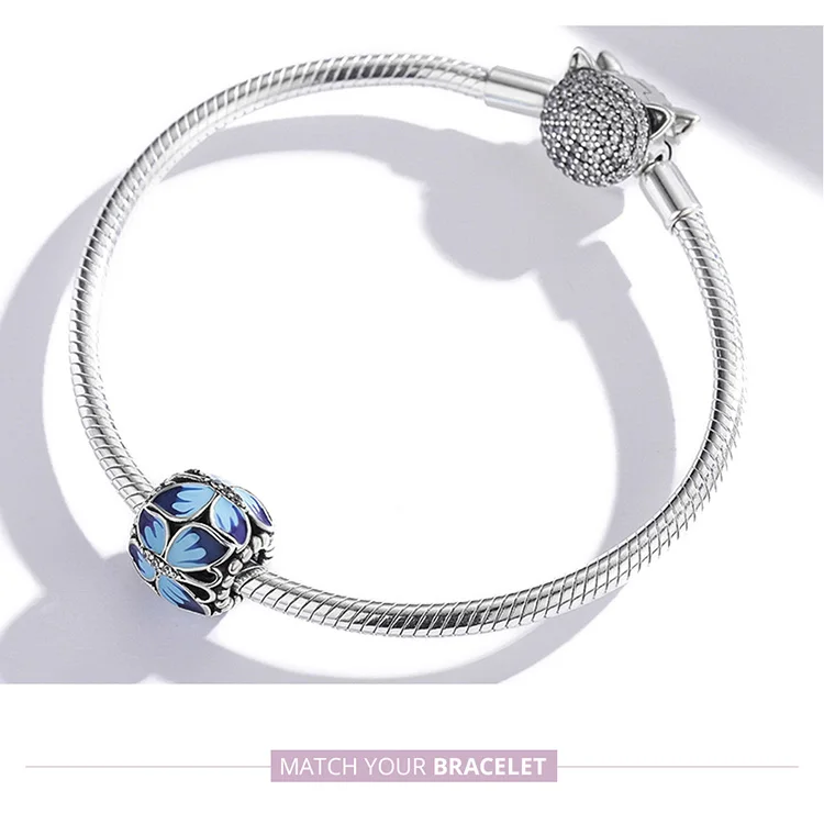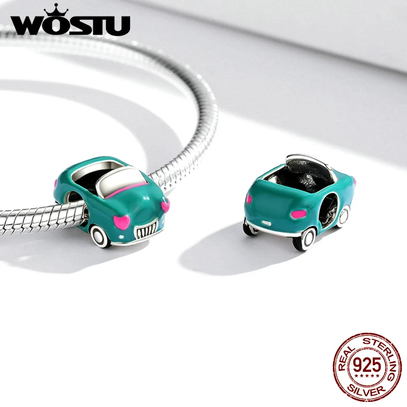 WOSTU Аутентичные Оригинальные 925 стерлингового серебра черный Кот Стрекоза автомобиля брелок бусины для женщин браслет и браслет ювелирные изделия