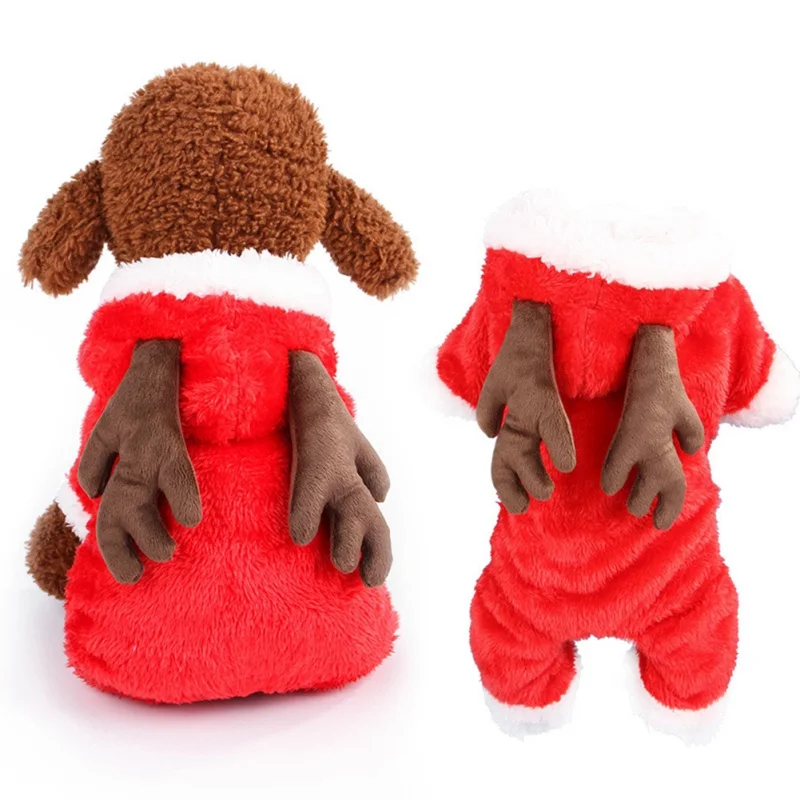 Рождественская утепленная куртка для собак, одежда с милым щенком, оленей, зимний костюм для собак, кошек, теплая толстовка с лосем, пальто для собак