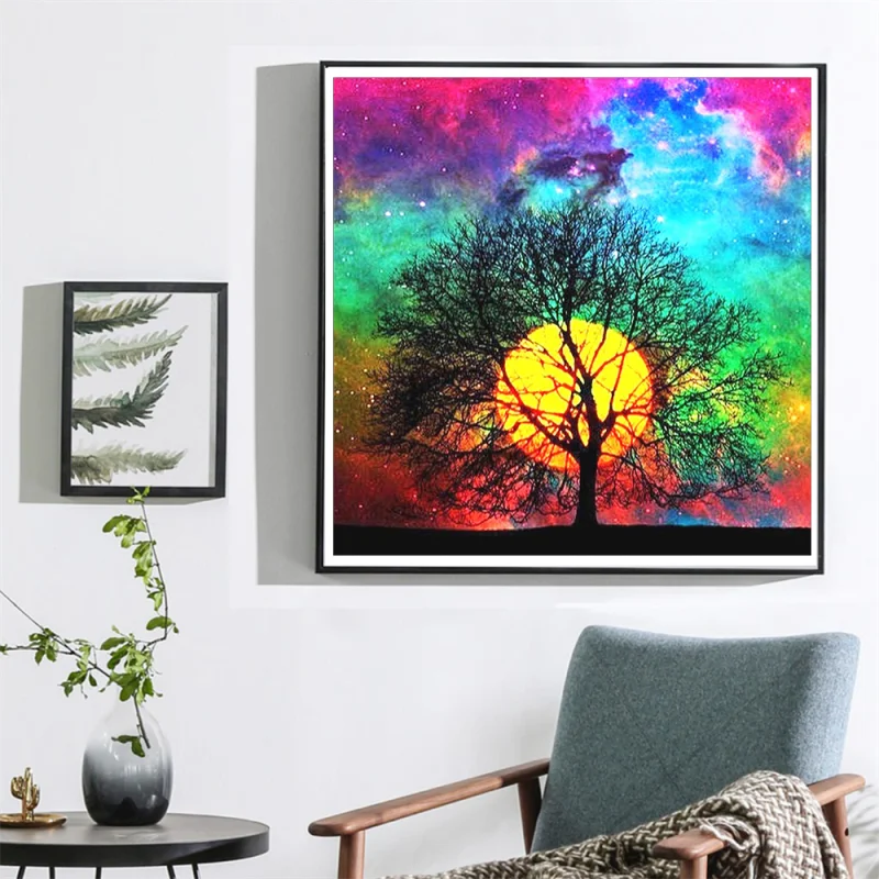 Картина с бриллиантами вышивка пейзажи Луна «дерево» Алмазная Картина Краска Полный Круглый Просверленный пейзаж Картина Стразы мозаика домашний декор