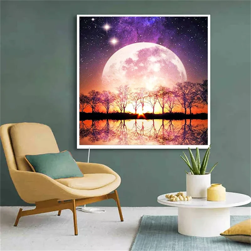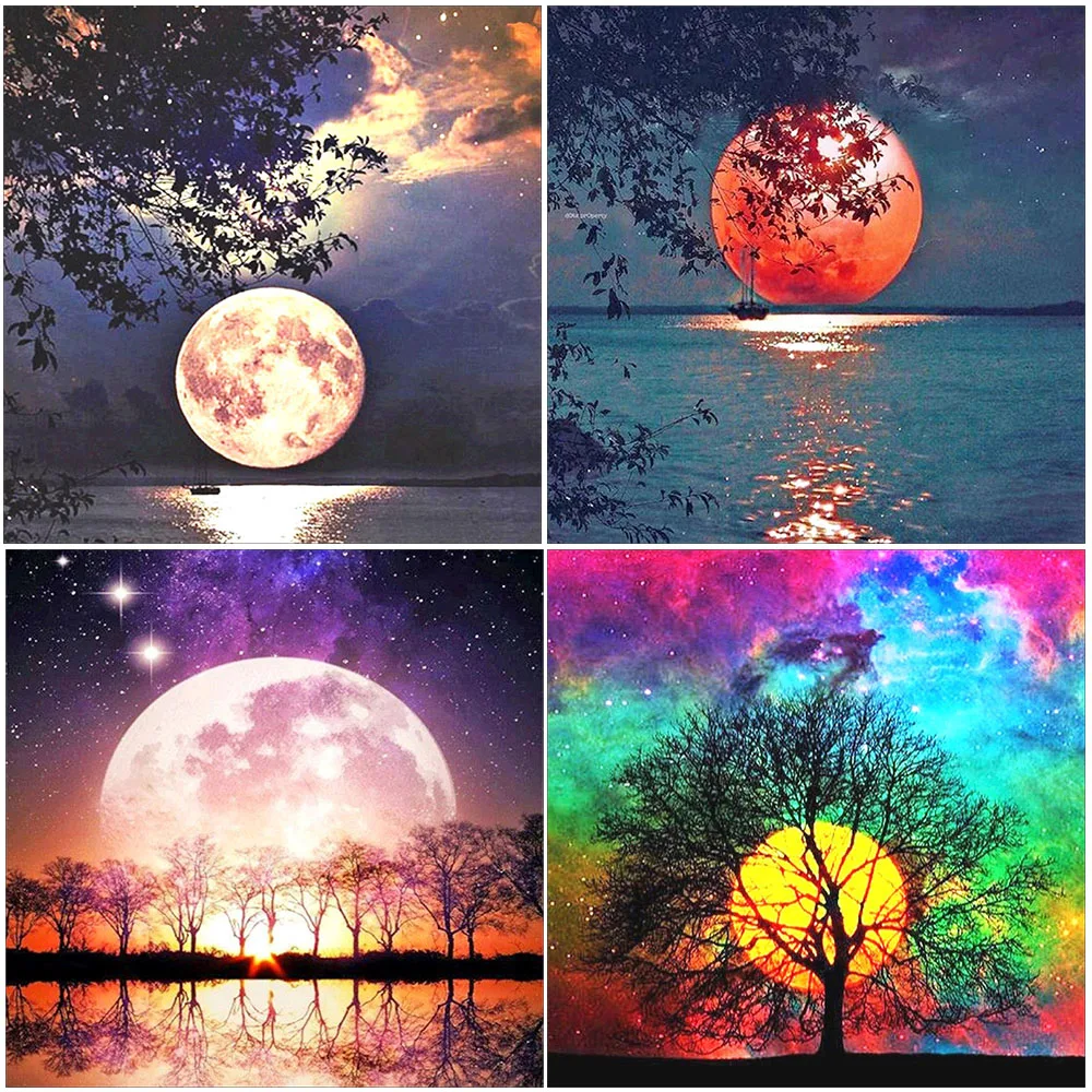 Картина с бриллиантами, вышивка, пейзаж, луна, искусственная роспись, Полный Круглый пейзаж, картина стразы, мозаика, домашний декор