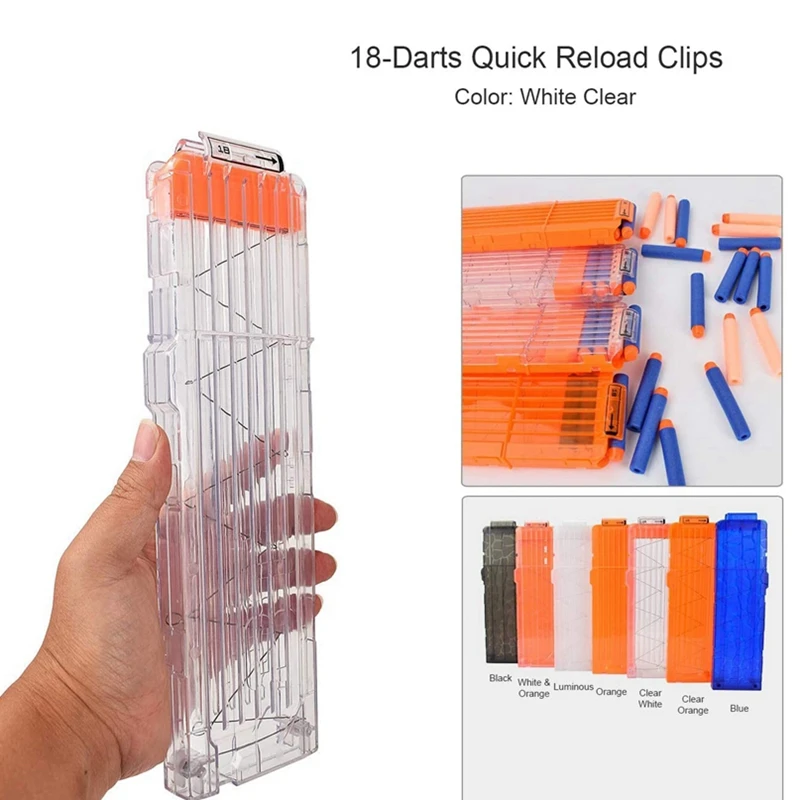 Детская игрушкаВысококачественные игрушки для детей всех возрастов, изготовлены из безопасных материалов, отличный подарок для ваших детей.ЁмкостьВмещает 12 пенных или мягких пуль, но лучше для 11 пуль. Точный дизайн обеспечит его практичность в работе высокой производительности.Премиум качествоИзготовлен из высококачественного АБС-пластика, противоударный и прочный, все зажимы протестированы и одобрены на работоспособность и качество.СовместимостьЭтот зажим для журналов совместим со всеми NERF N-STRIKE ELITE, подходит для пуль размером 7*1,35 см, отличный аксессуар, подходящий для всех пулевых пистолетов Hasbro.
