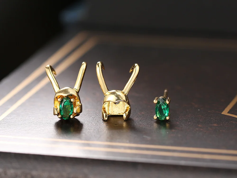 Женские серьги-гвоздики Loki, золотистые серьги в виде шлема с зеле...