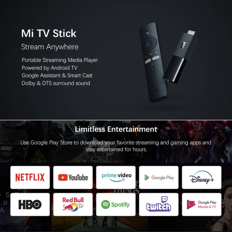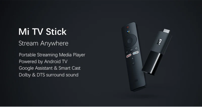ТВ-приставка Xiaomi Mi TV Stick глобальная версия дюйма, Android TV 9,0, HDR, 1080P, Dolby DTS HD, 1 ГБ ОЗУ, 8 Гб ПЗУ, работает с Google Assistant, Netflix