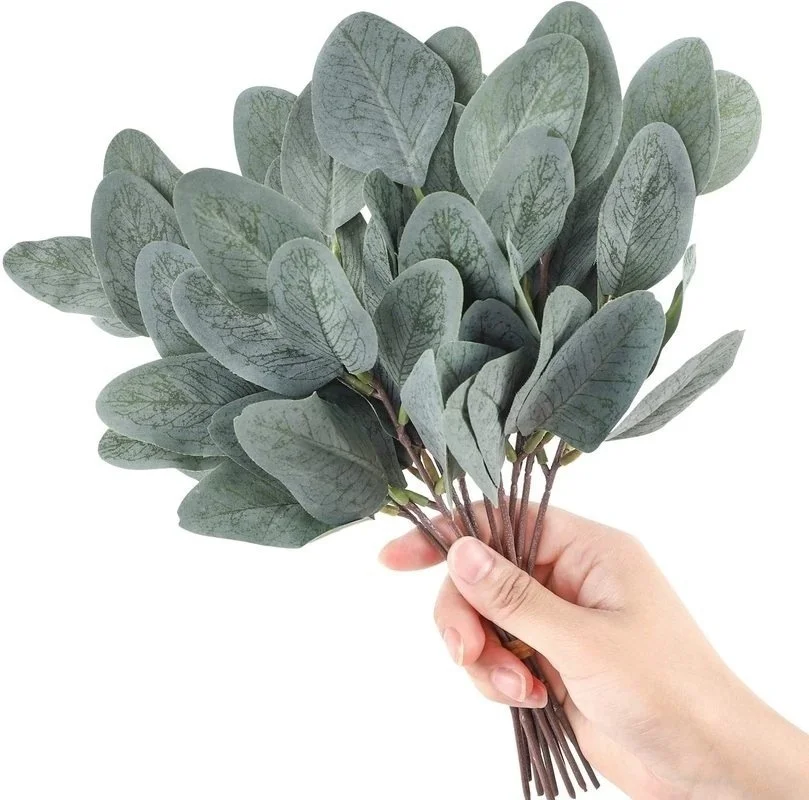 Искусственные листья эвкалипта, шелковые искусственные растения для самостоятельного изготовления букета для свадьбы, праздника, зелени, декора, декоративные цветы для дома, 1 шт.