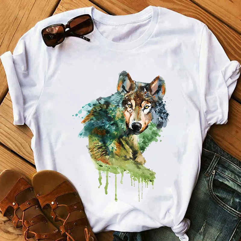 Брендовая Футболка с волком, Женская забавная белая футболка, Повседневная футболка с животными для девочек, женская летняя свободная футболка с коротким рукавом и круглым вырезом, футболки, топы