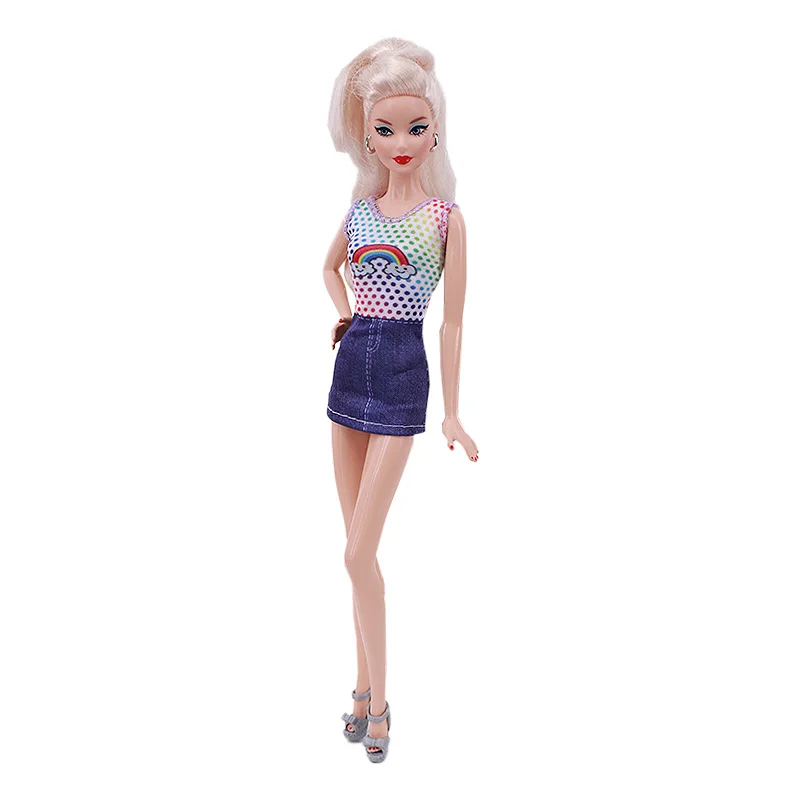 Кукольная одежда для Барби, платье ручной работы и футболка, коротк...