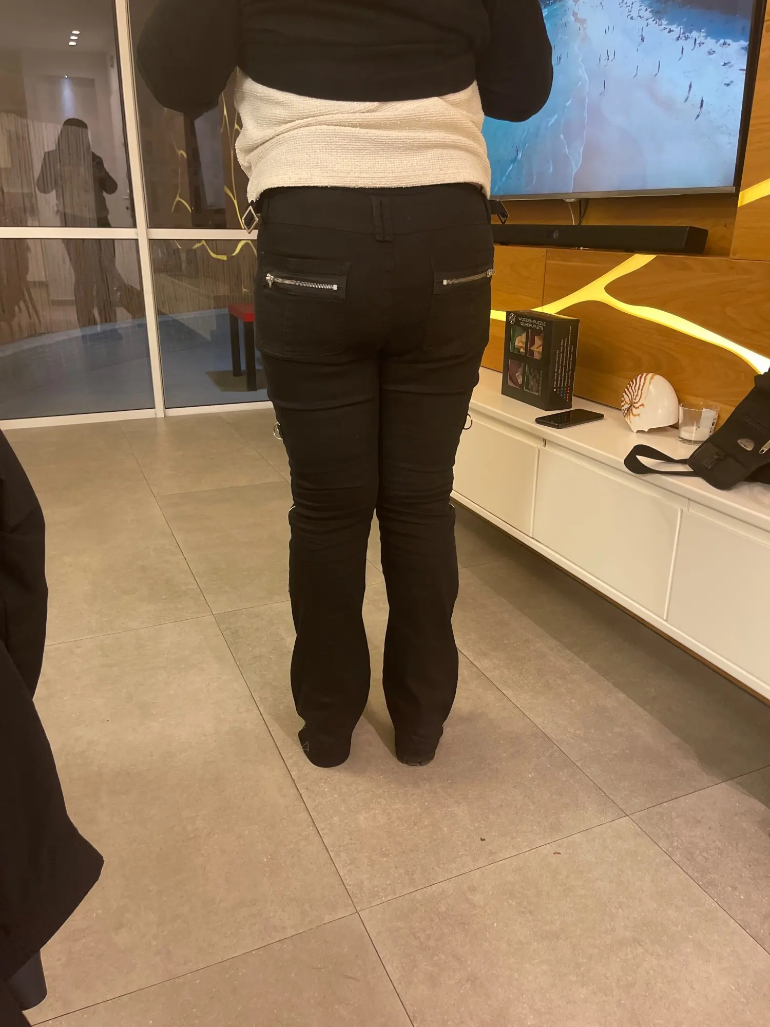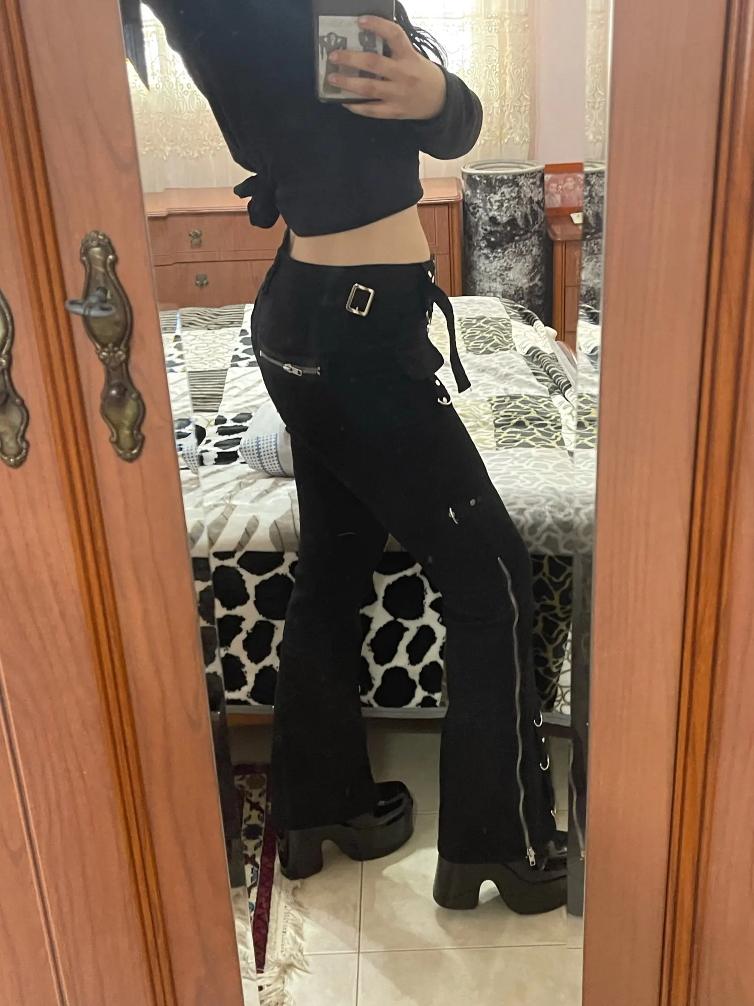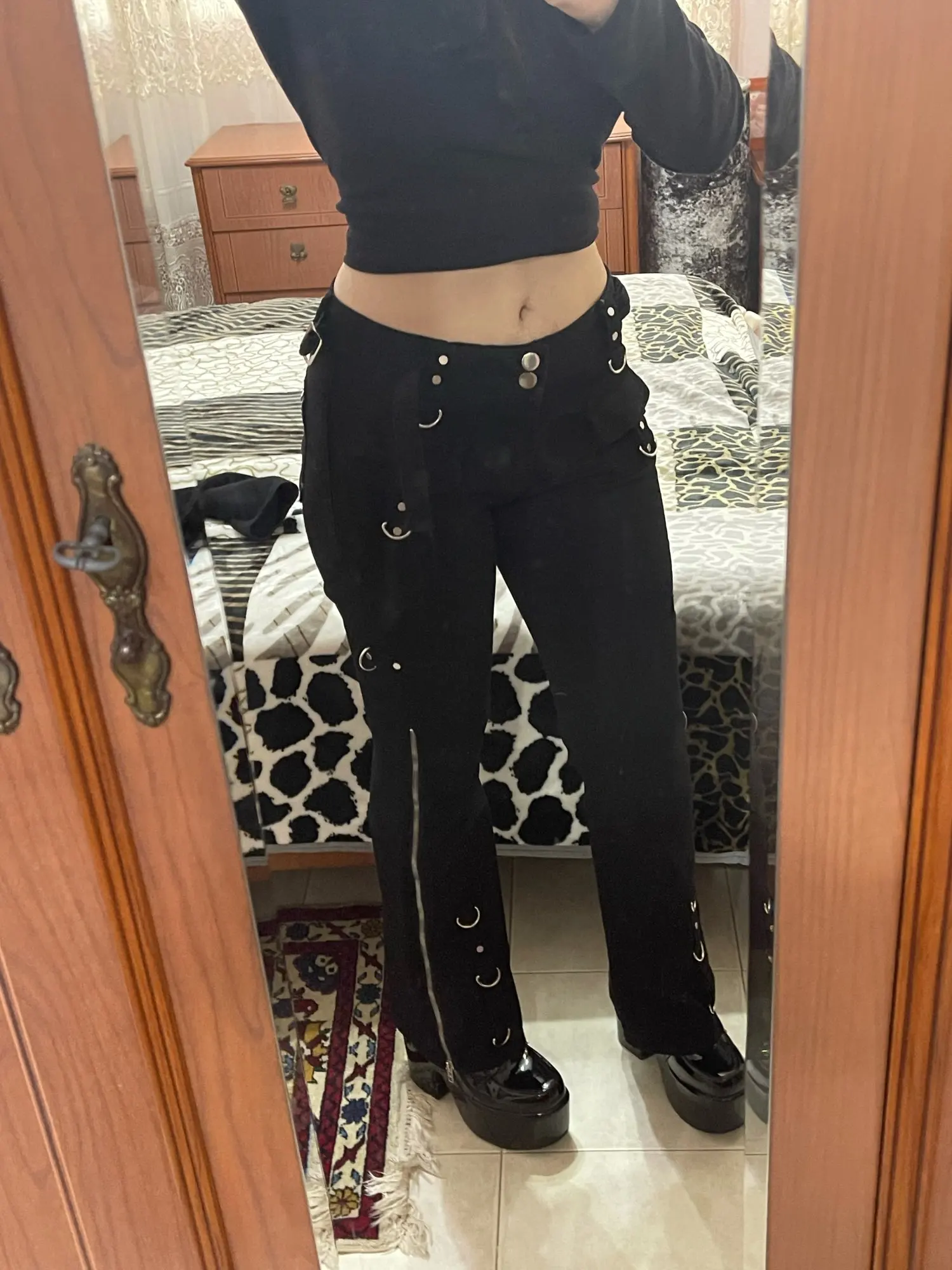Они идеально сидят вокруг талии и ноги, они немного длинные, но я короткий, поэтому я ожидал, что и обувь на платформе/каблуки исправят эту проблему в любом случае