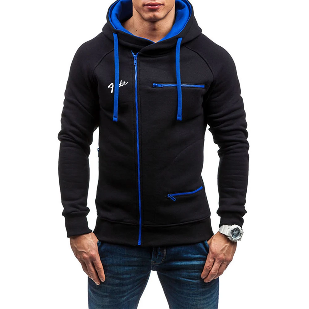 Новинка 2021, Мужская толстовка Bugatti на молнии с логотипом музыкальной гитары, с капюшоном, верхняя одежда в стиле Харадзюку