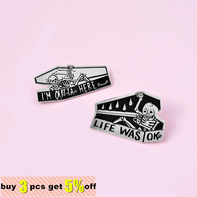 Эмалированная брошь в виде скелета Let's Hide, брошь в виде гроба, джинсы, рубашки, Значки для сумок, лацканов, темный Хэллоуин, ювелирные изделия, подарок другу, оптовая продажа