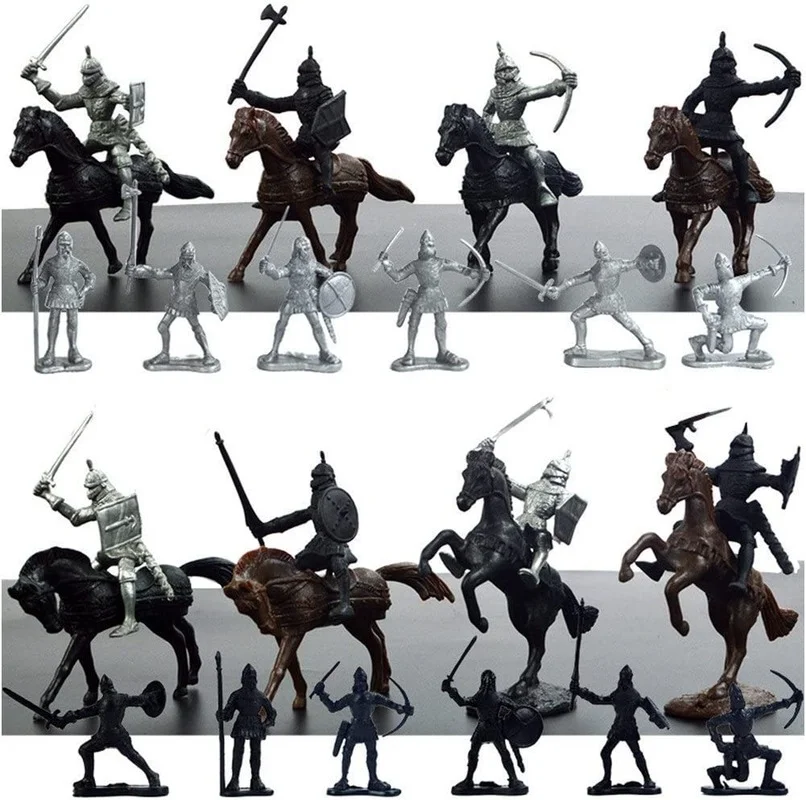 28 шт., рыцари среднего возраста, модели, лошади, солдаты, армия, мужские экшн-фигурки, средневековые солдаты, воины, миниатюрные Пластиковые Мужские Орна, ts