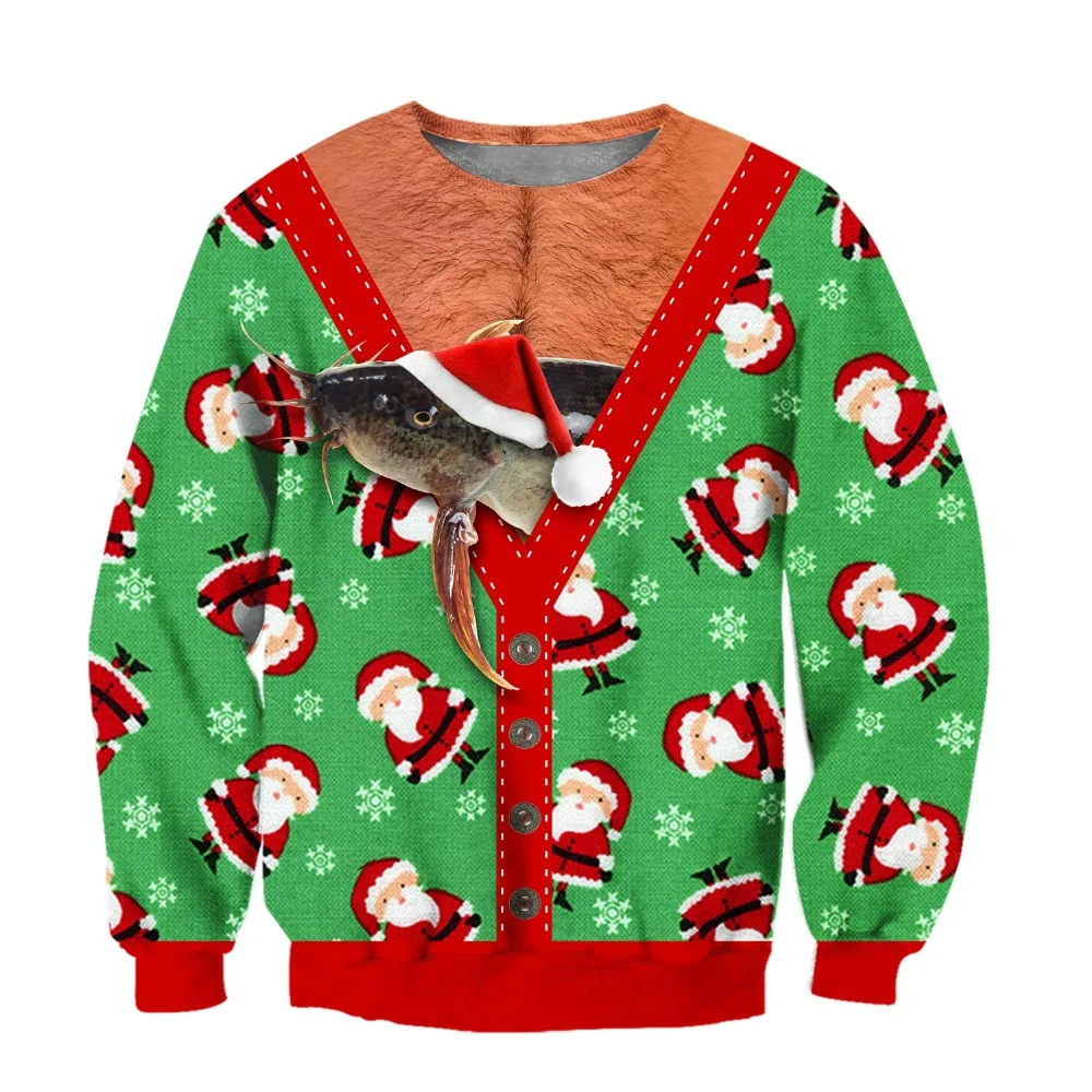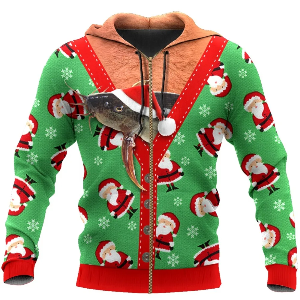 Модные осенние толстовки CLOOCL для рыбалки, свитшот для мужчин с 3D рисунком сома, уродливым Рождеством, пуловер унисекс на молнии, повседневная куртка