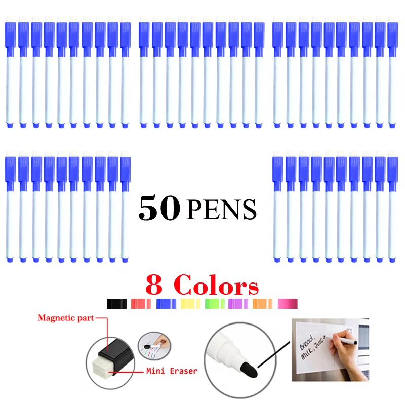 50 шт. маркеры для сухого стирания, 8 цветов, белая доска, ручка для письма, акварельная ручка, магнитные принадлежности для письма