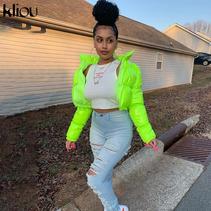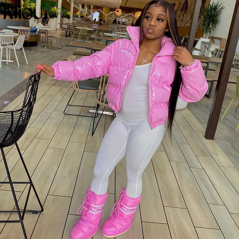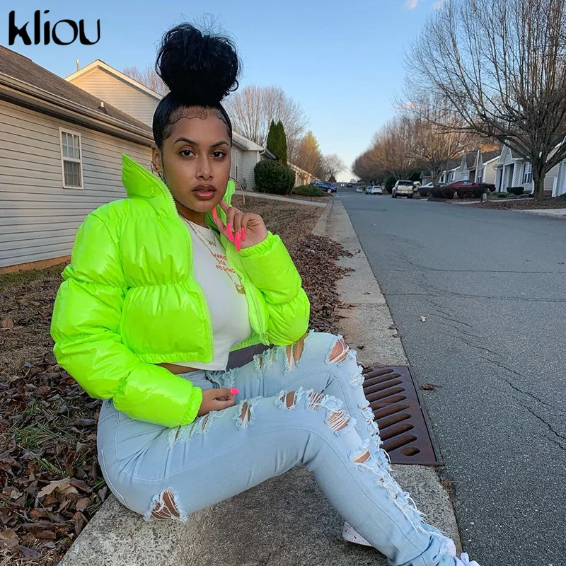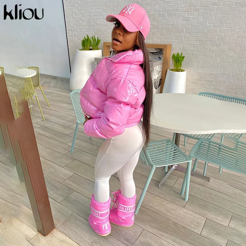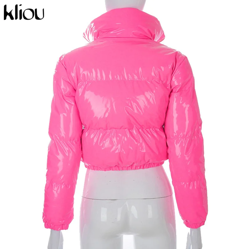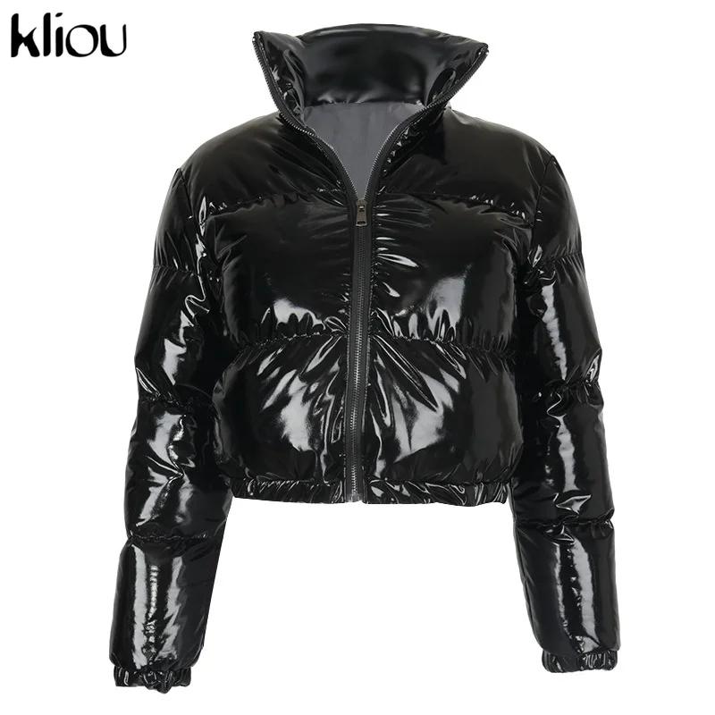 Kliou High Street хлопковая куртка для женщин хипстер Осенняя теплая однотонная искусственная кожа PU на молнии Топ с длинным рукавом Водолазка женская одежда