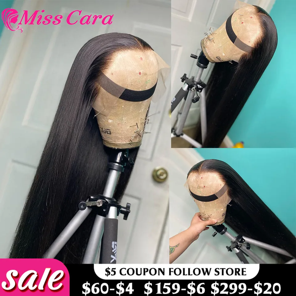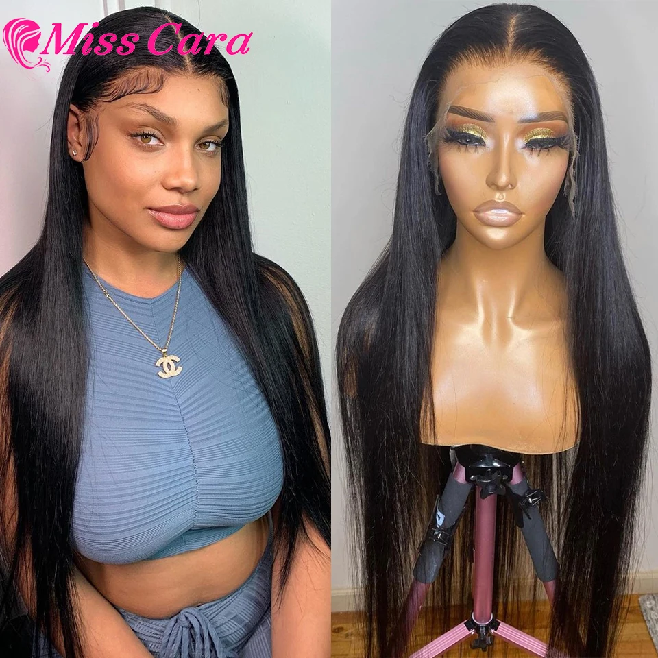 Miss Cara, прямые парики из натуральных волос на кружеве для женщин, 13X4, HD, кружевные передние парики, 4X4, длинные малазийские прямые парики на шнурках