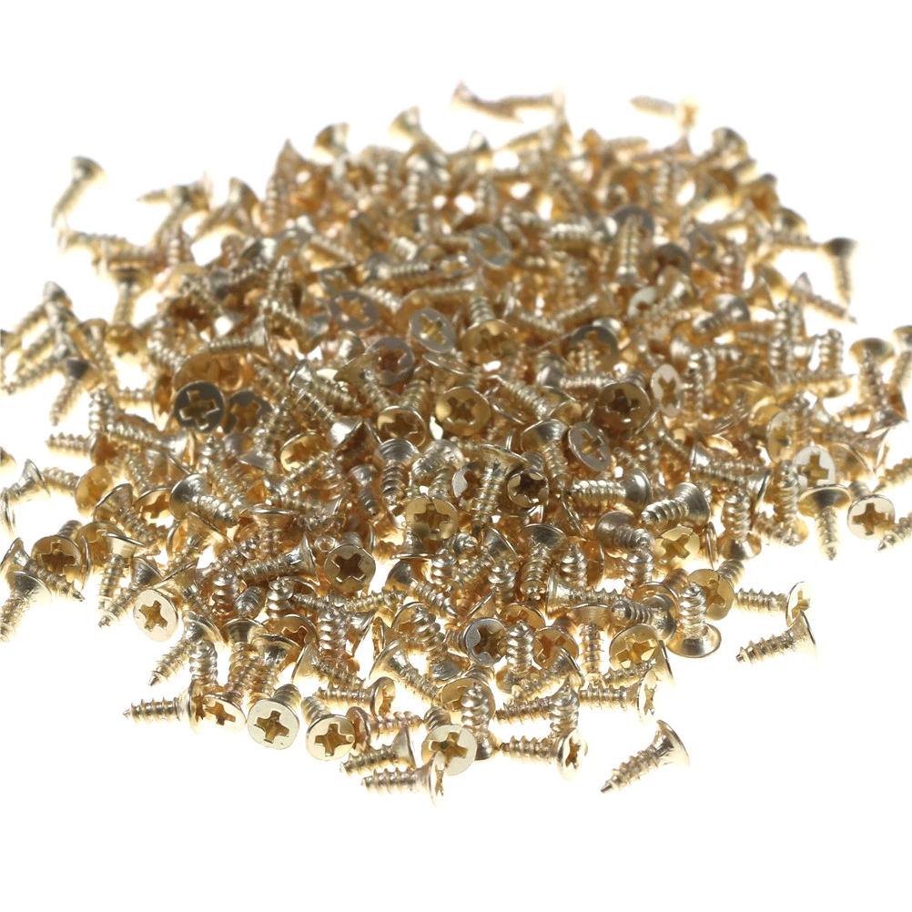 Маленькие золотые винты, латунный материал, плоский винт с потайной головкой Phillips, Самонарезающий винт для деревянных петель коробки, сделай сам