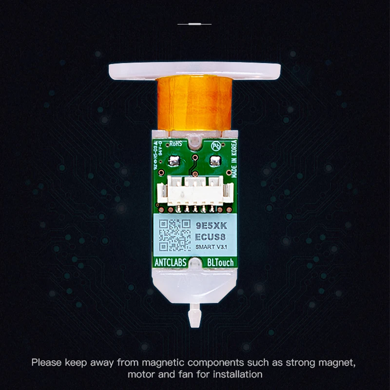 BLTouch is fulfilled with simple structure and high precision by using progressively designed solenoid and hall sensors. It aims for user convenience and enjoyable printing by adding many smart functions, such as self-test, alarm, alarm release & Touch Switch mode, Blue LED for servo signal indicating, and Z-probe(Zmin) Testing.