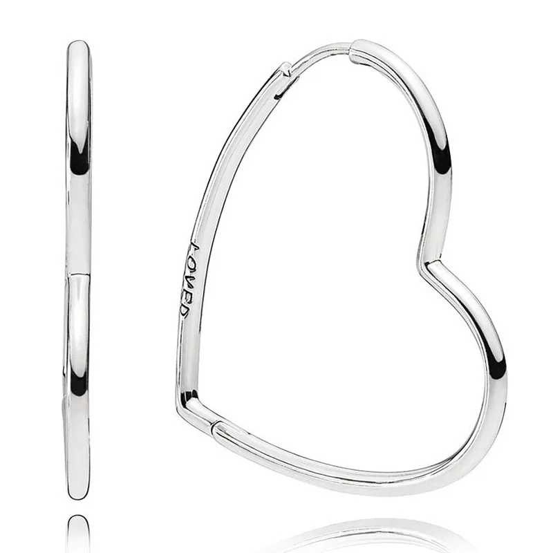 Женские серьги-кольца из серебра 925 пробы, с асимметричным сердцем