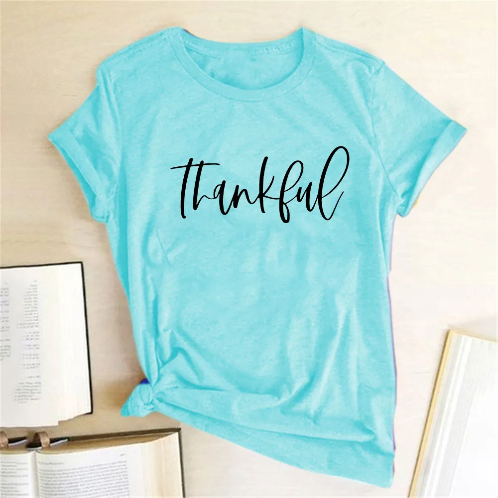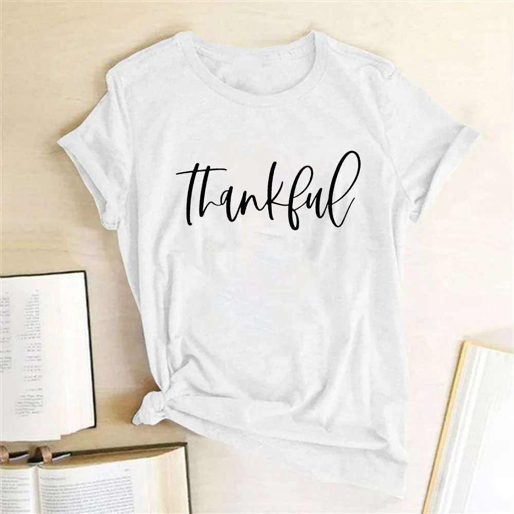 Harajuku благодарная женская футболка с буквенным принтом, летняя свободная футболка с коротким рукавом, Женская Повседневная футболка с графическим принтом на День Благодарения