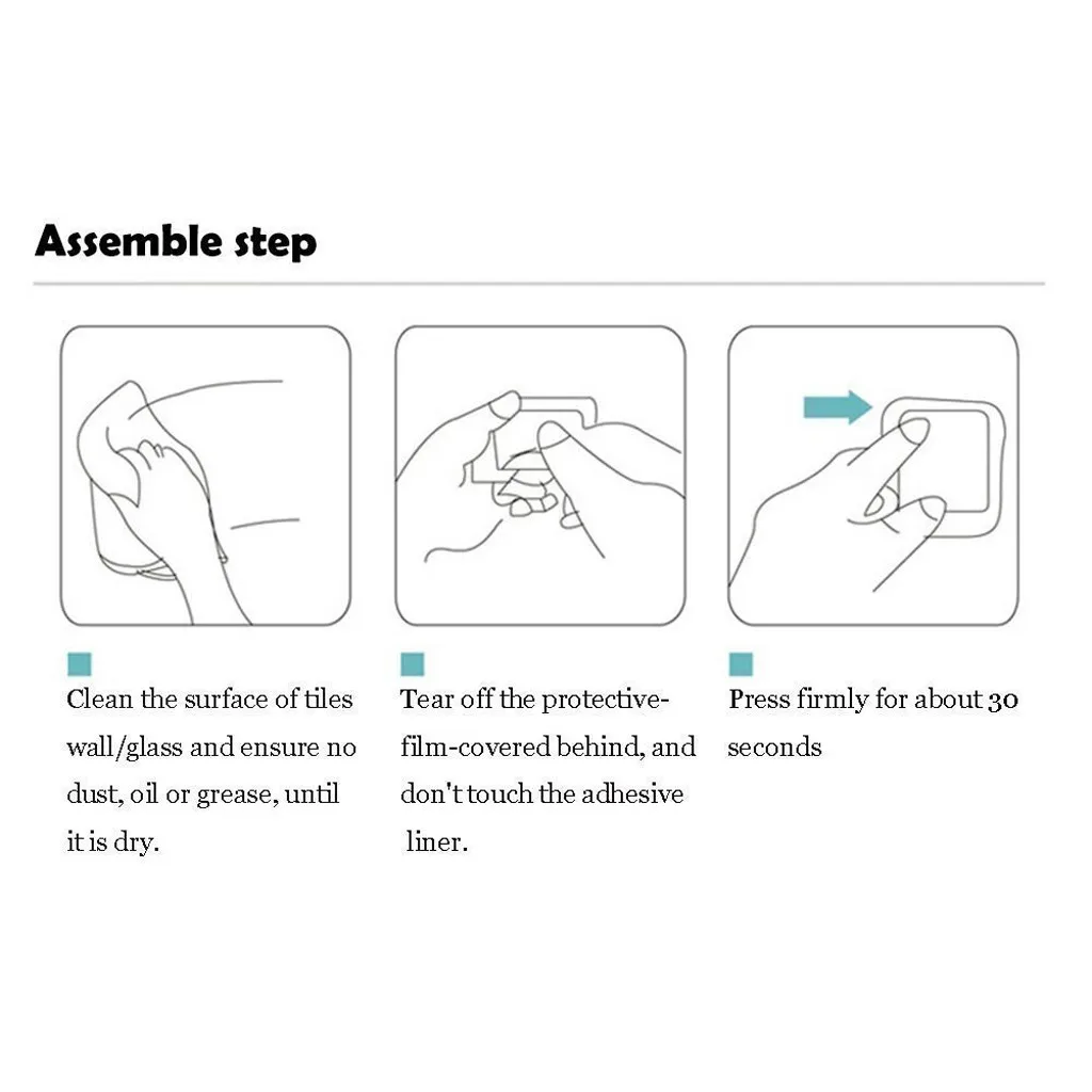 1) не нужно сверлить отверстия в стене, просто очистите установочную поверхность (должна быть гладкая поверхность, например, металлическая поверхность керамической плитки, очки и т. д.) и высушите ее.