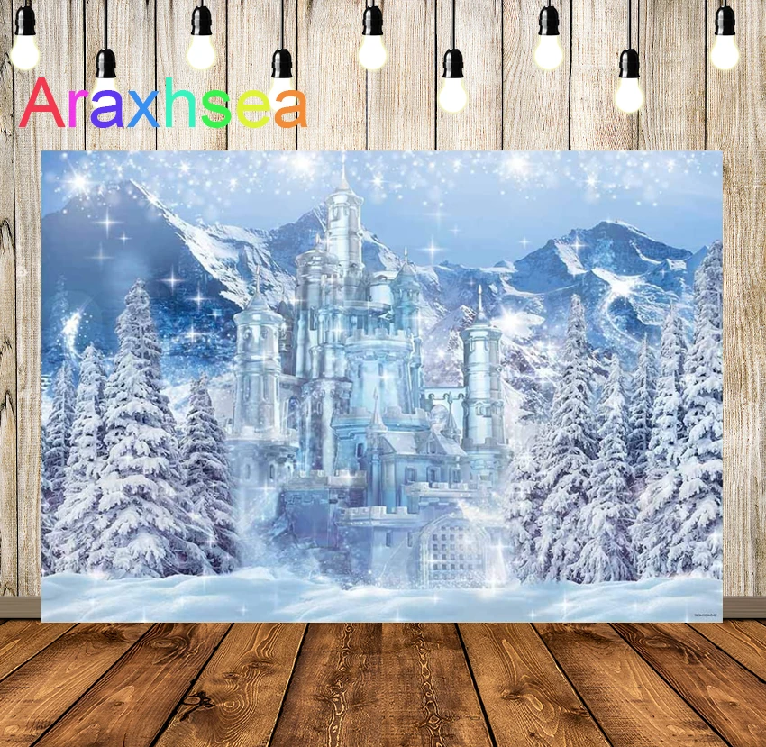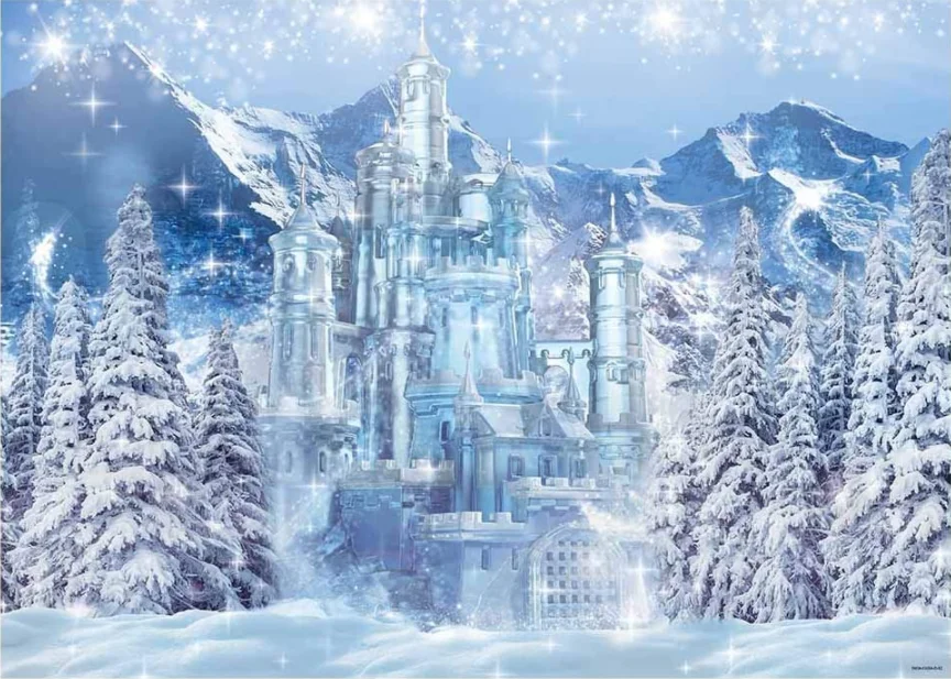 Фон для фотосъемки с изображением зимнего замка, голубого ледяного замерзшего леса, страны чудес, снежной горки, сосны, украшение для будущей мамы