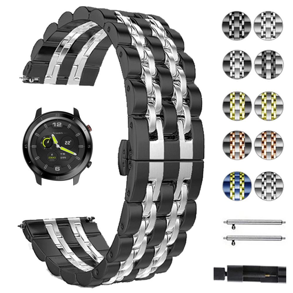 Металлический ремешок для часов из нержавеющей стали для TicWatch 2, 3, GTX S2, E2, браслет для TicWatch Pro 3, ремешок для наручных часов 20, 22 мм
