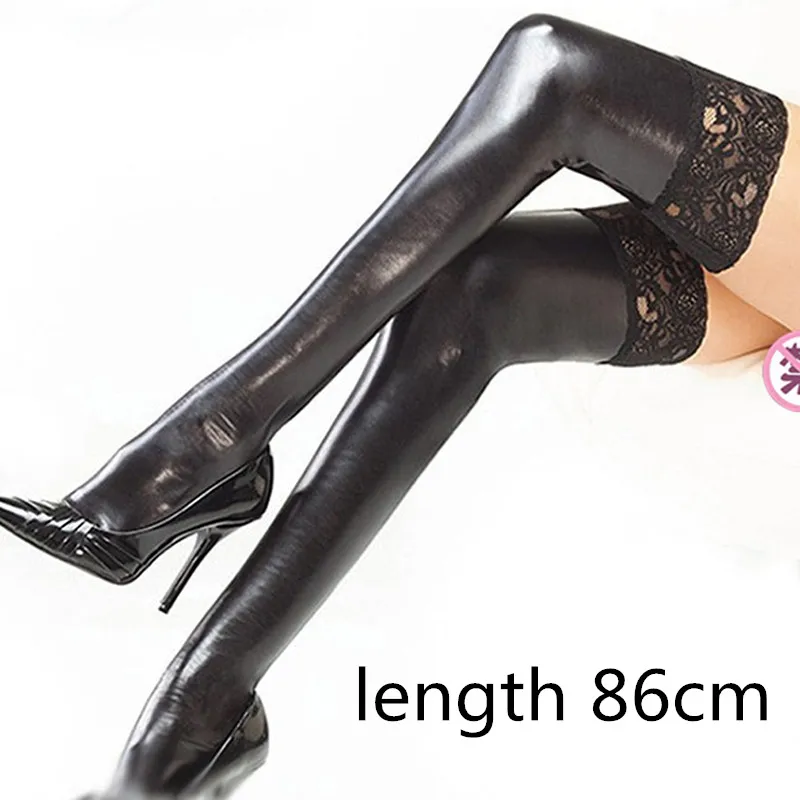 Новые стильные женские латексные чулки большого размера, сексуальные Чулочные изделия для ночного клуба, женские чулки до бедра из искусственной кожи для полюсного танца