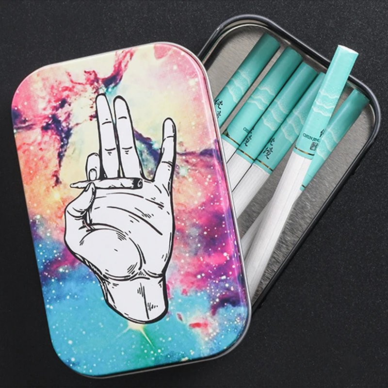 Модный чехол для сигарет с металлической печатью, Влагонепроницаемая коробка для хранения травяных сорняков, курительная бумажная банка, аксессуары для дыма