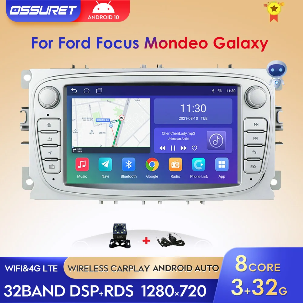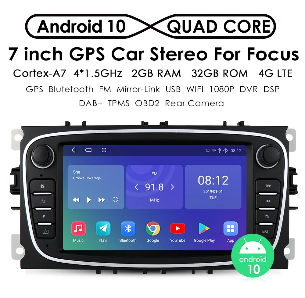 Автомобильный радиоприемник с голосовым управлением AI, мультимедийный плеер для Ford Focus, Fiesta, Galaxy S-Max, Mondeo, Android 10, GPS, 7 дюймов, аудио, авто, стерео, Wi-Fi