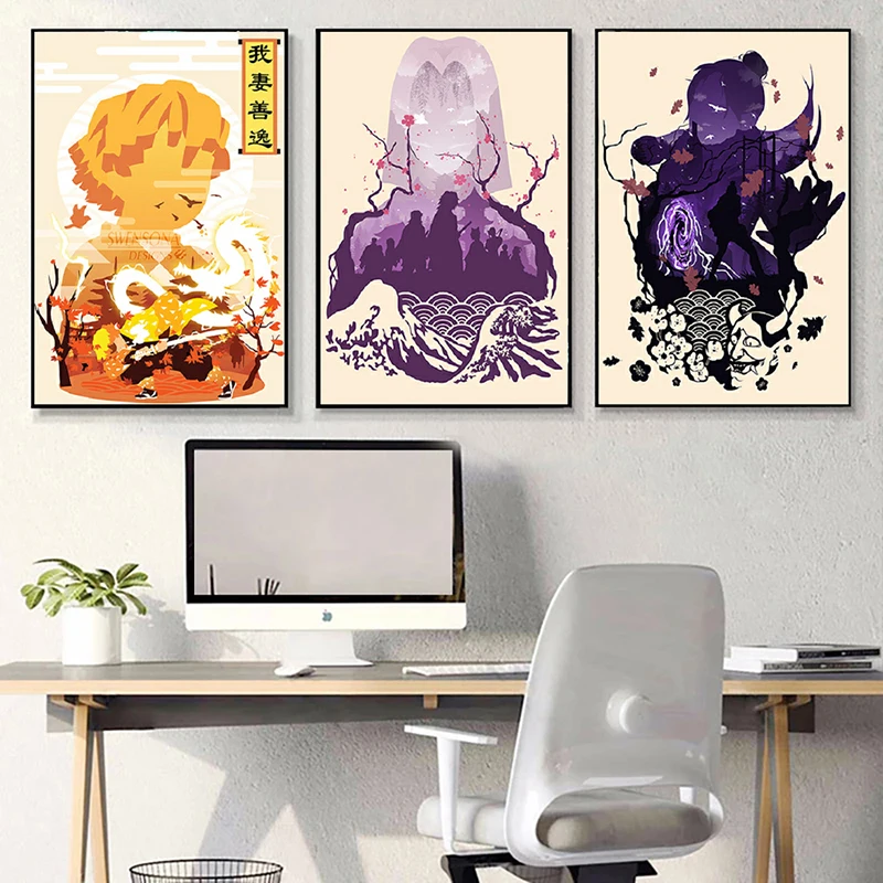 Постер в стиле аниме рассекающий демонов, современное оформление ко...