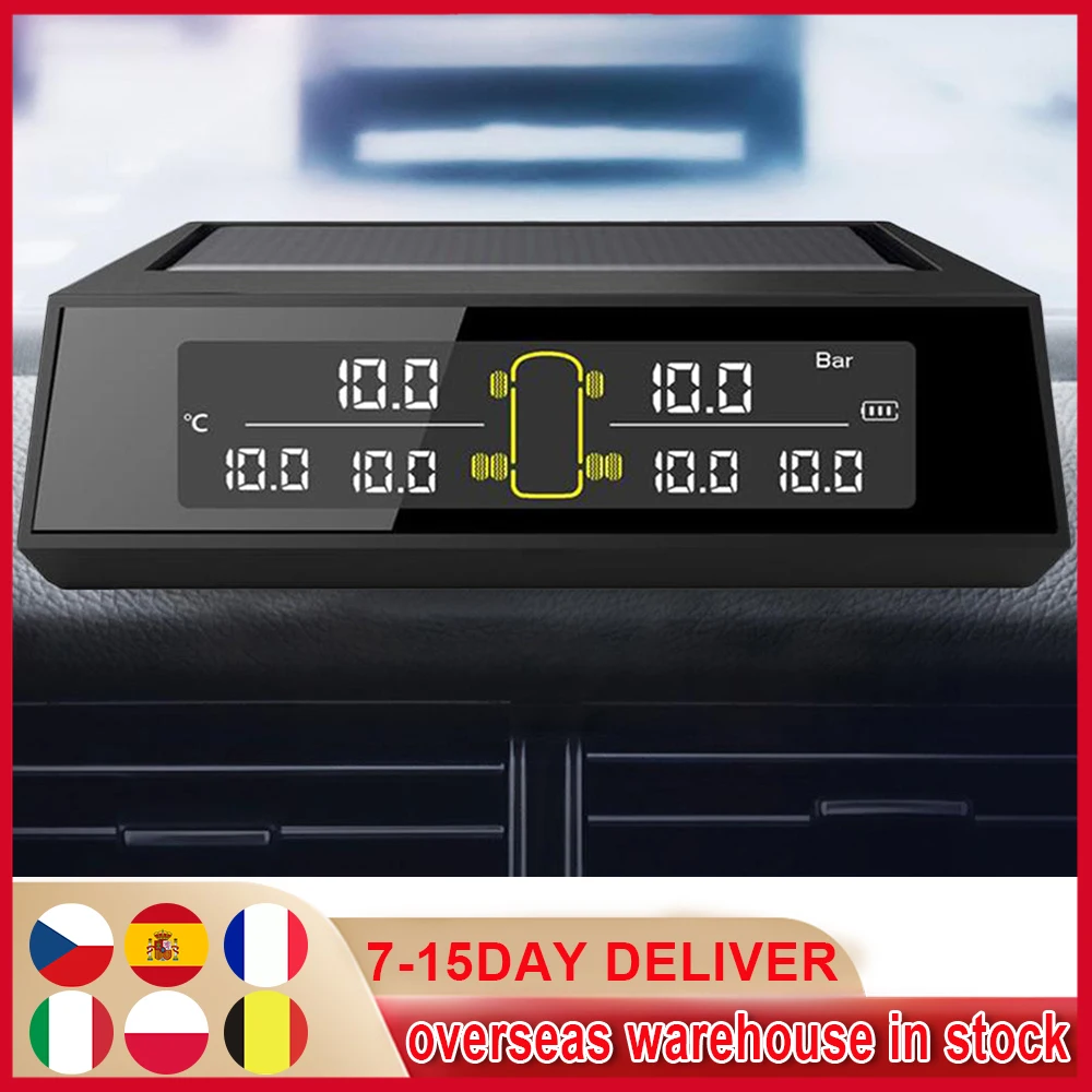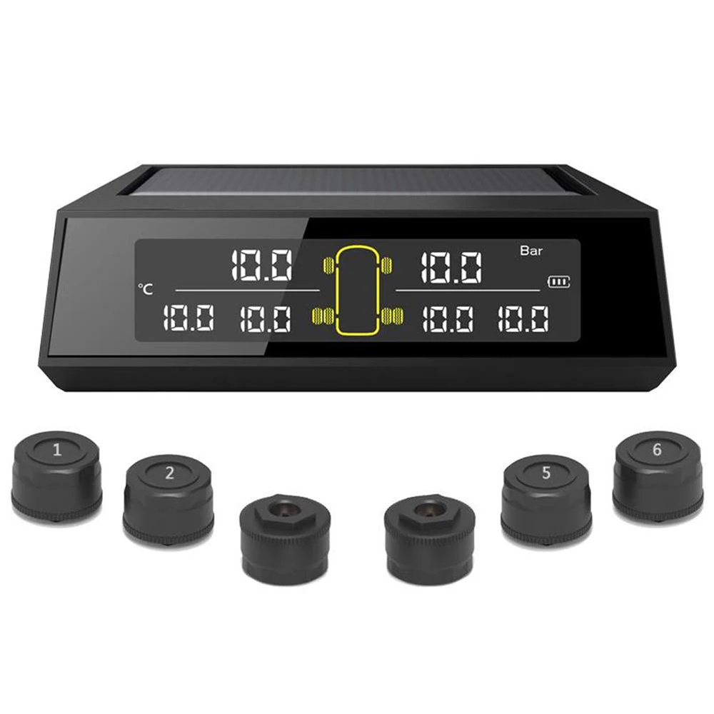 Датчик давления в шинах, беспроводной датчик давления в шинах на солнечной батарее, с ЖК-дисплеем, 6 внешними датчиками