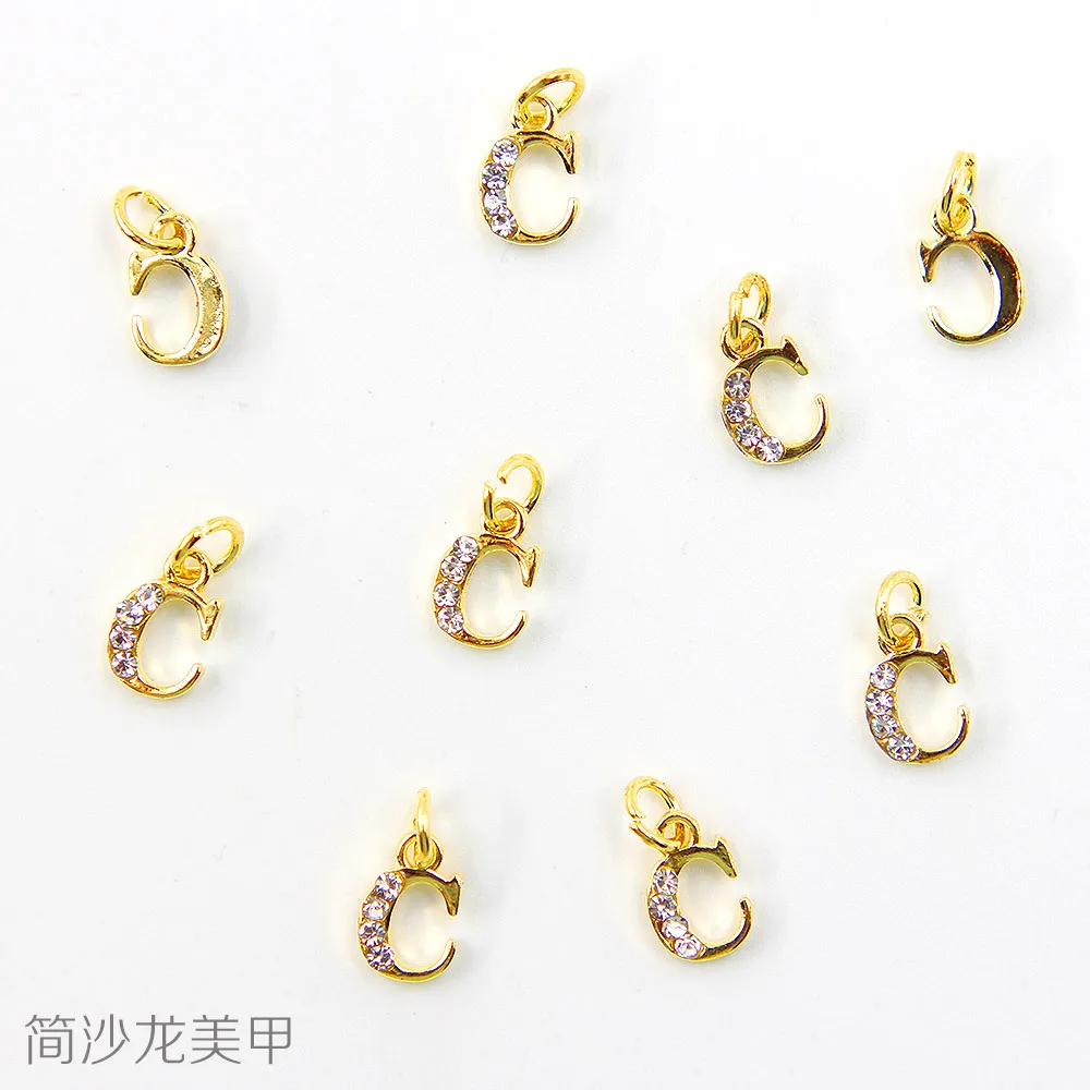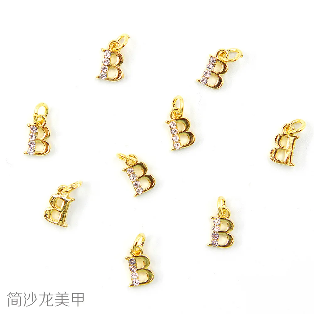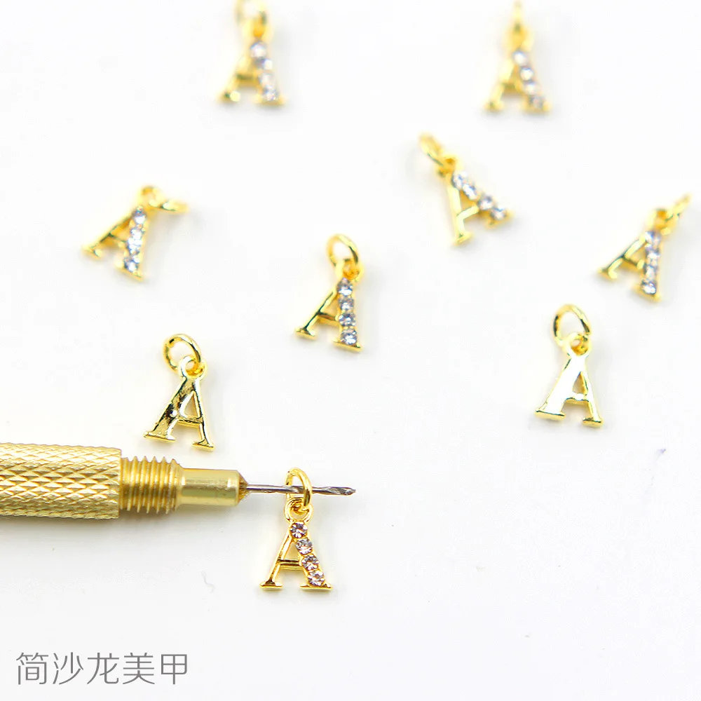 26 золотых букв, 0-9 Количество отверстие очарование металлический кристалл мотаться ногтей 3D Стразы для ногтей сплав шт кулон украшения # T220