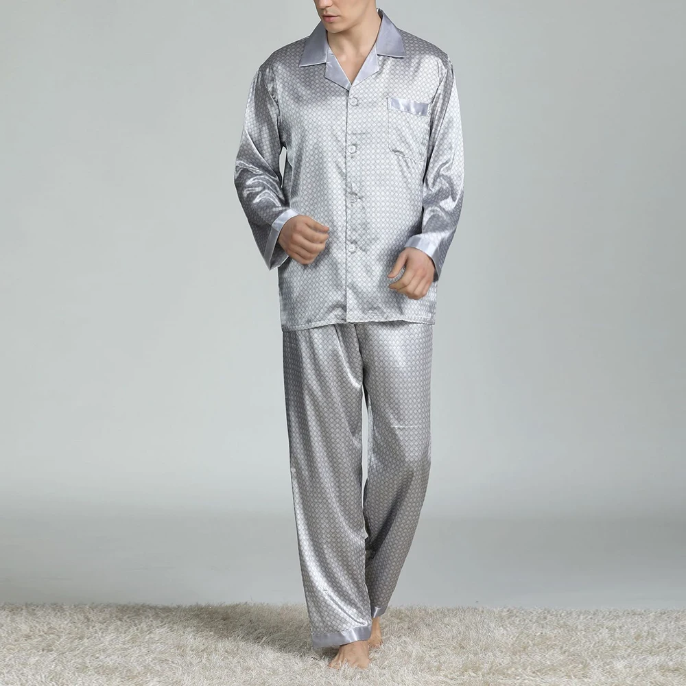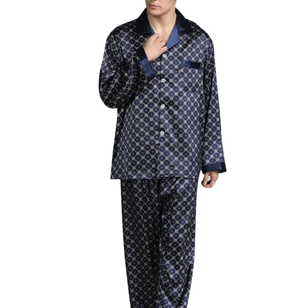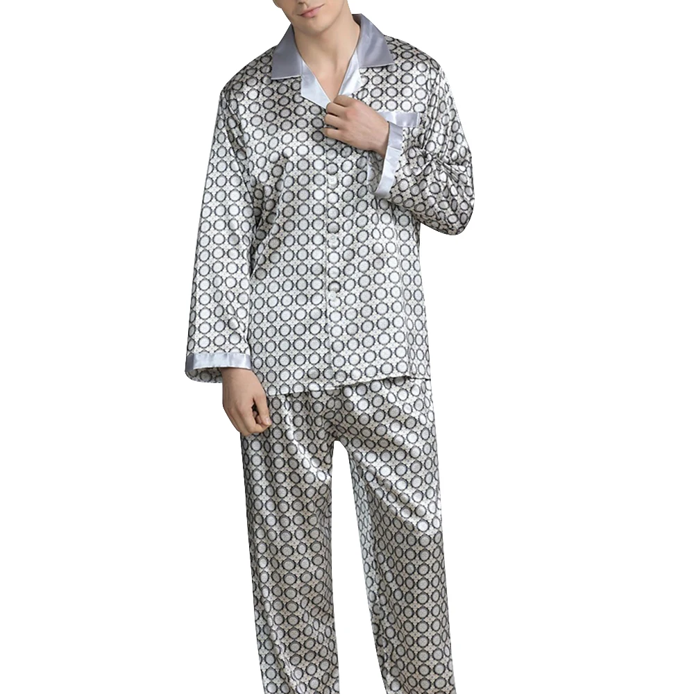 Мужские атласные шелковые пижамные комплекты, одежда для сна, Повседневная Ночная рубашка, свободная одежда для дома, пижамы, пижамы, осенняя новая ночная одежда с принтом, домашняя одежда
