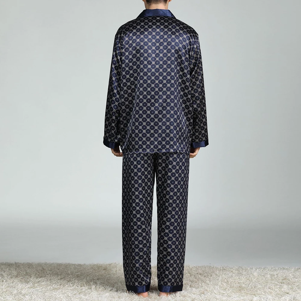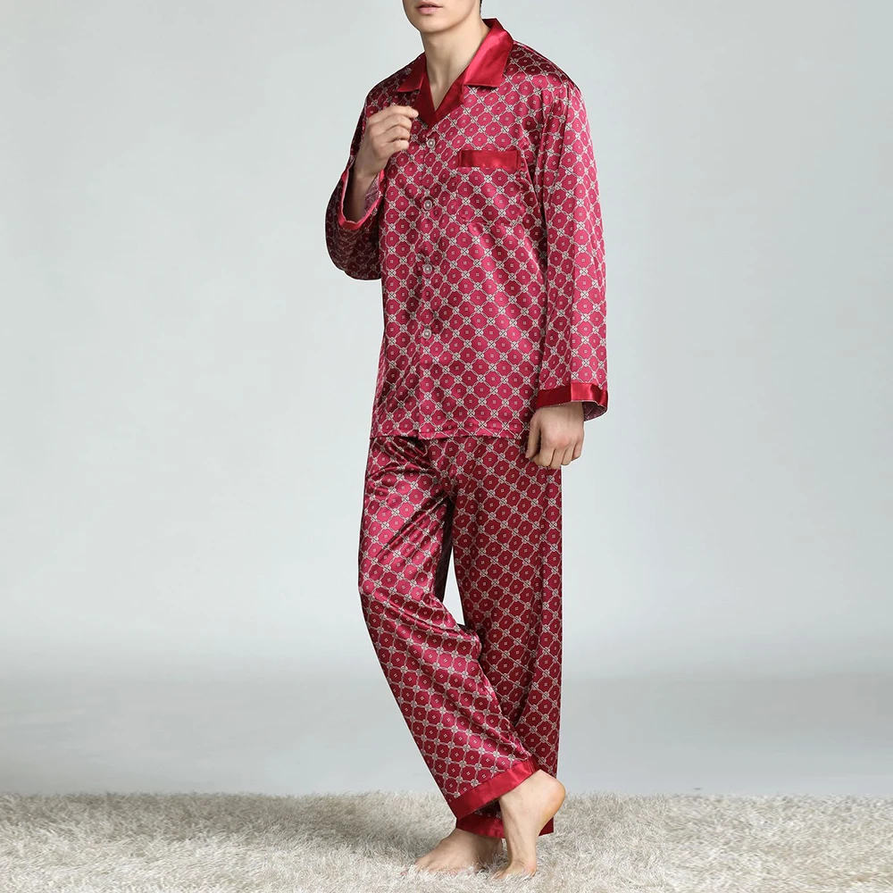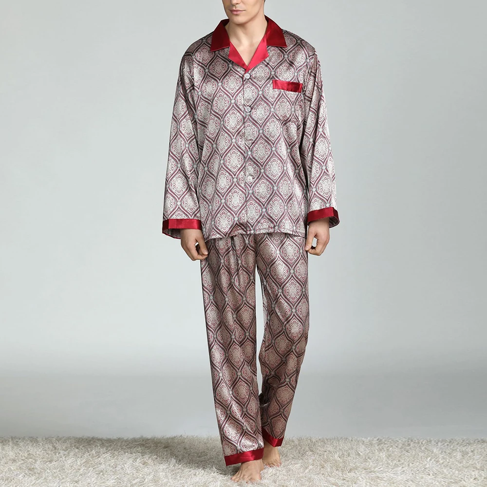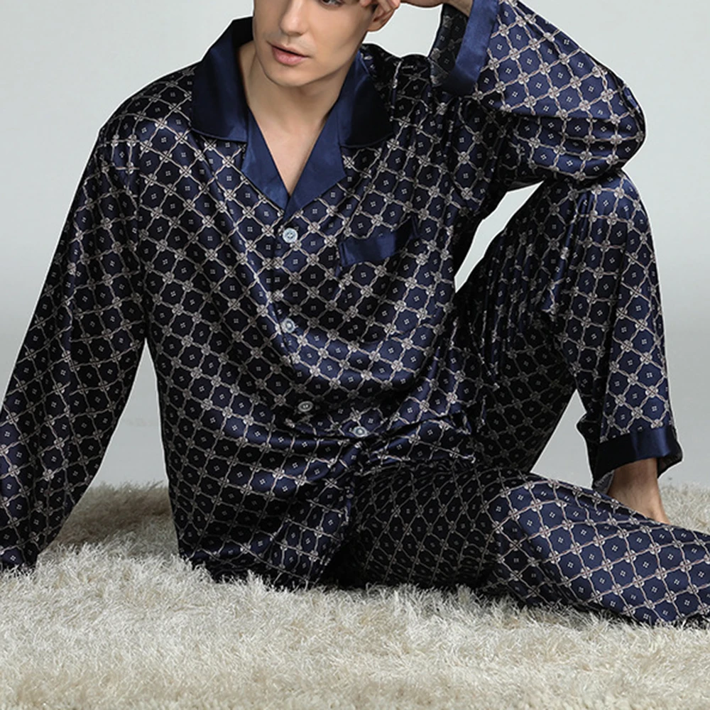 Мужские атласные шелковые пижамные комплекты, одежда для сна, Повседневная Ночная рубашка, свободная одежда для дома, пижамы, пижамы, осенняя новая ночная одежда с принтом, домашняя одежда