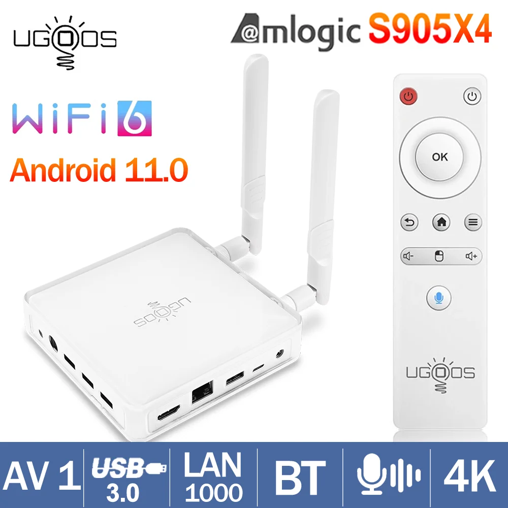 ТВ-приставка UGOOS AM7 Android 11 WiFi 6 Amlogic S905X4 AV1 4 Гб DDR4 32 ГБ ROM 1000M BT5.0 медиаплеер телеприставка vx AM6 PLUS