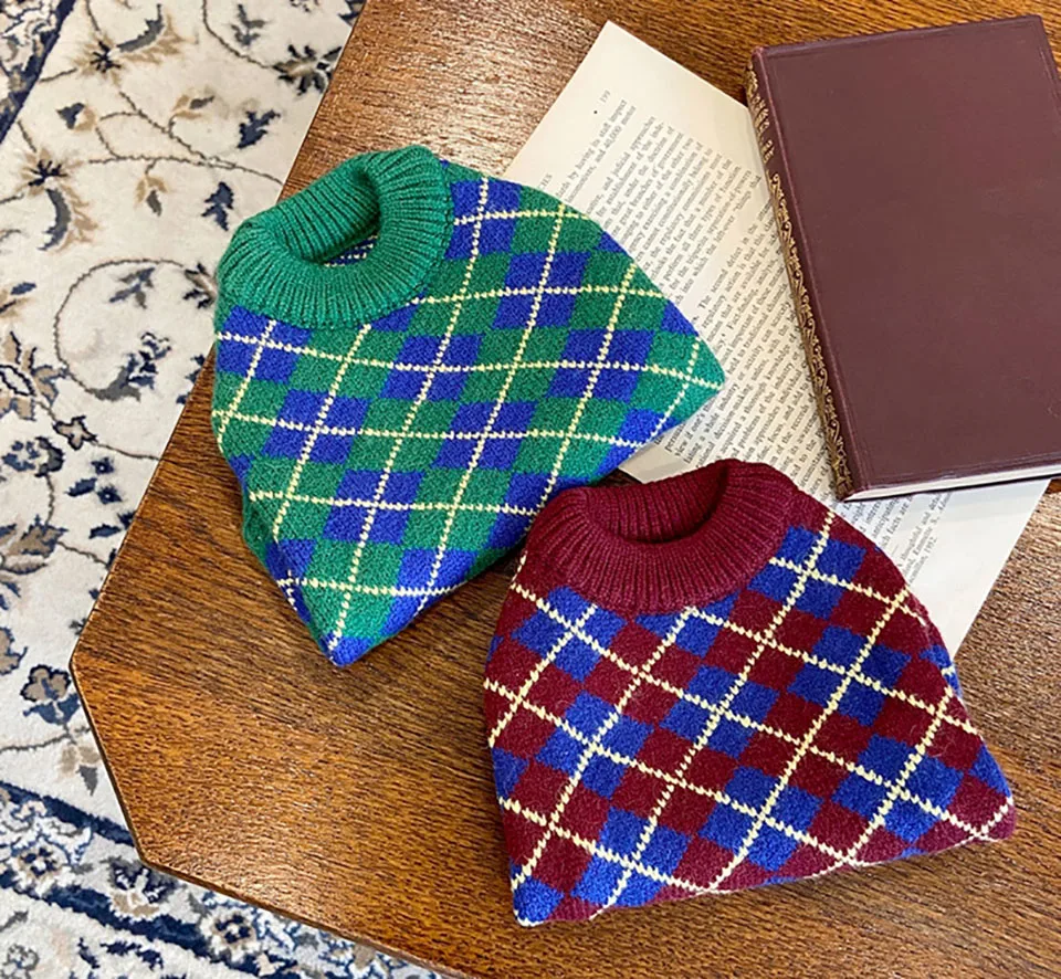 Вязаный свитер для домашних животных Тедди Шнауцер клетчатый свитер осень и зима теплая одежда для собак мягкий пуловер для щенков товары для домашних животных
