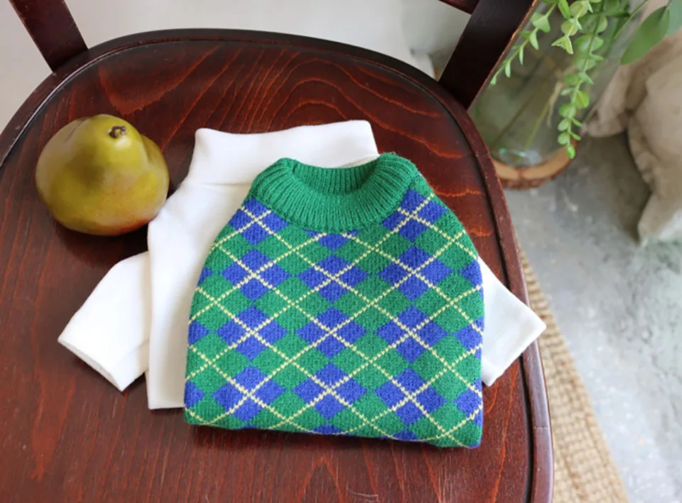 Вязаный свитер для домашних животных, зеленая клетчатая Тедди, одеж...