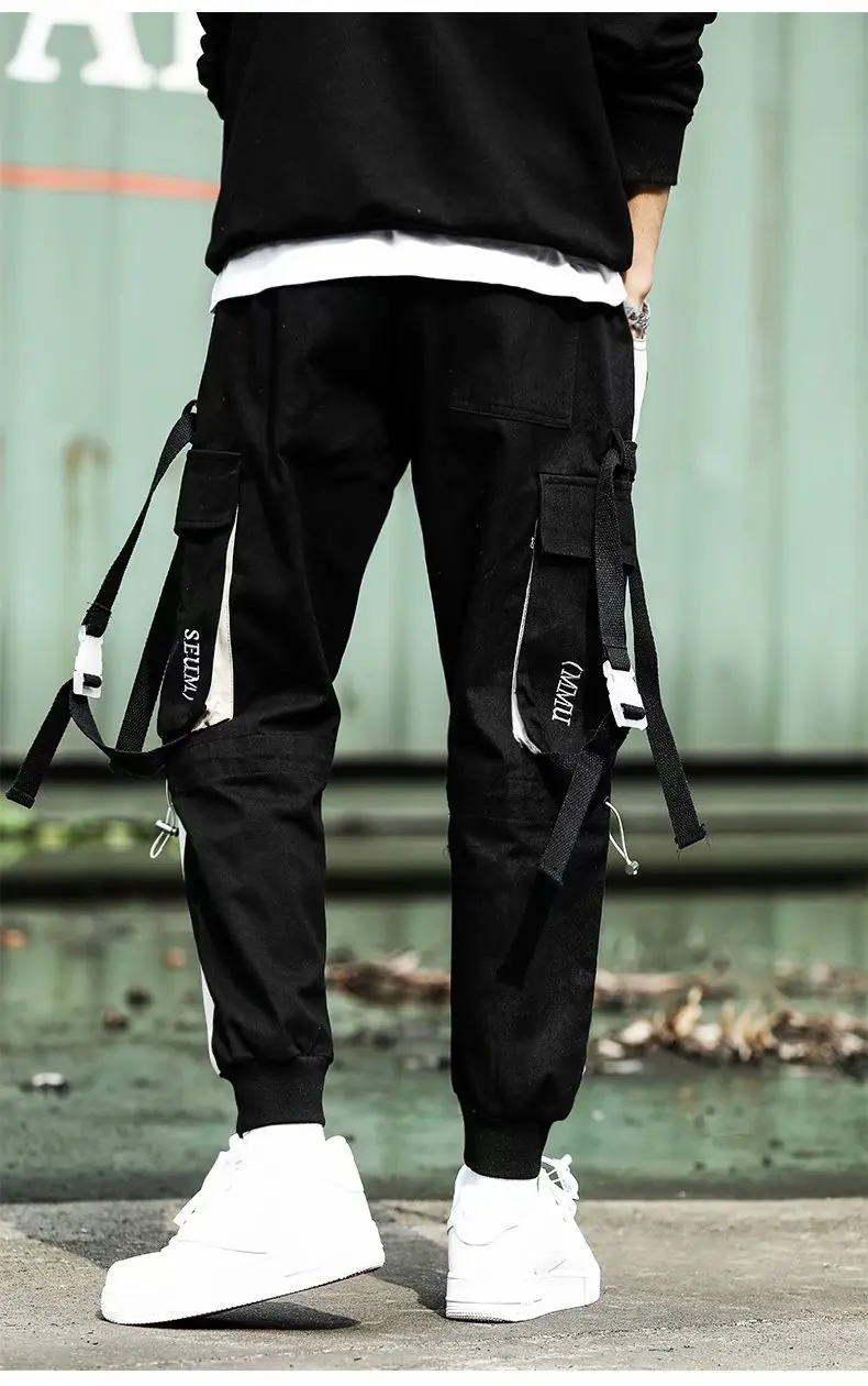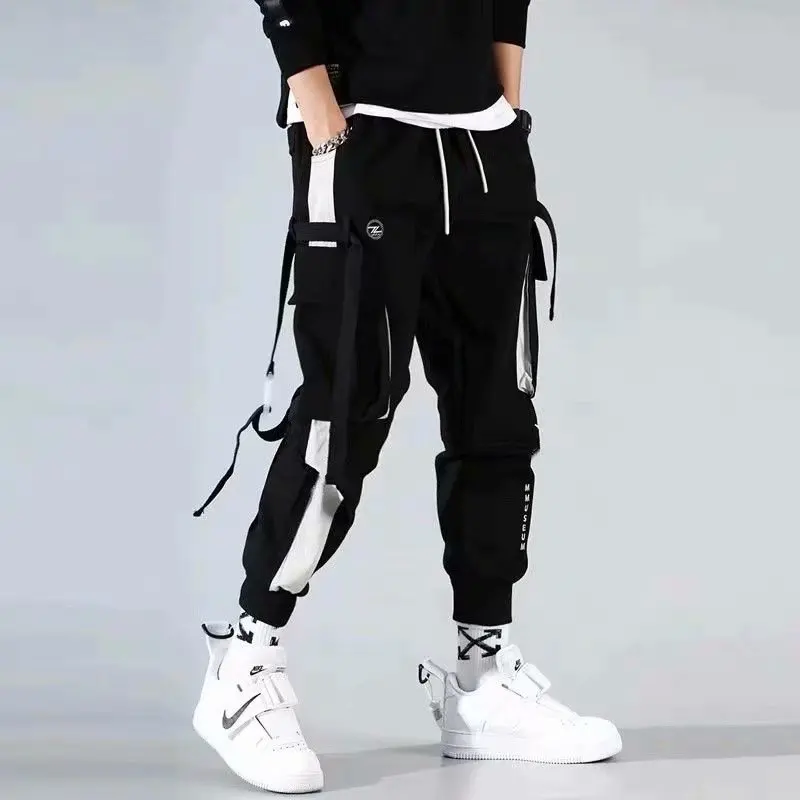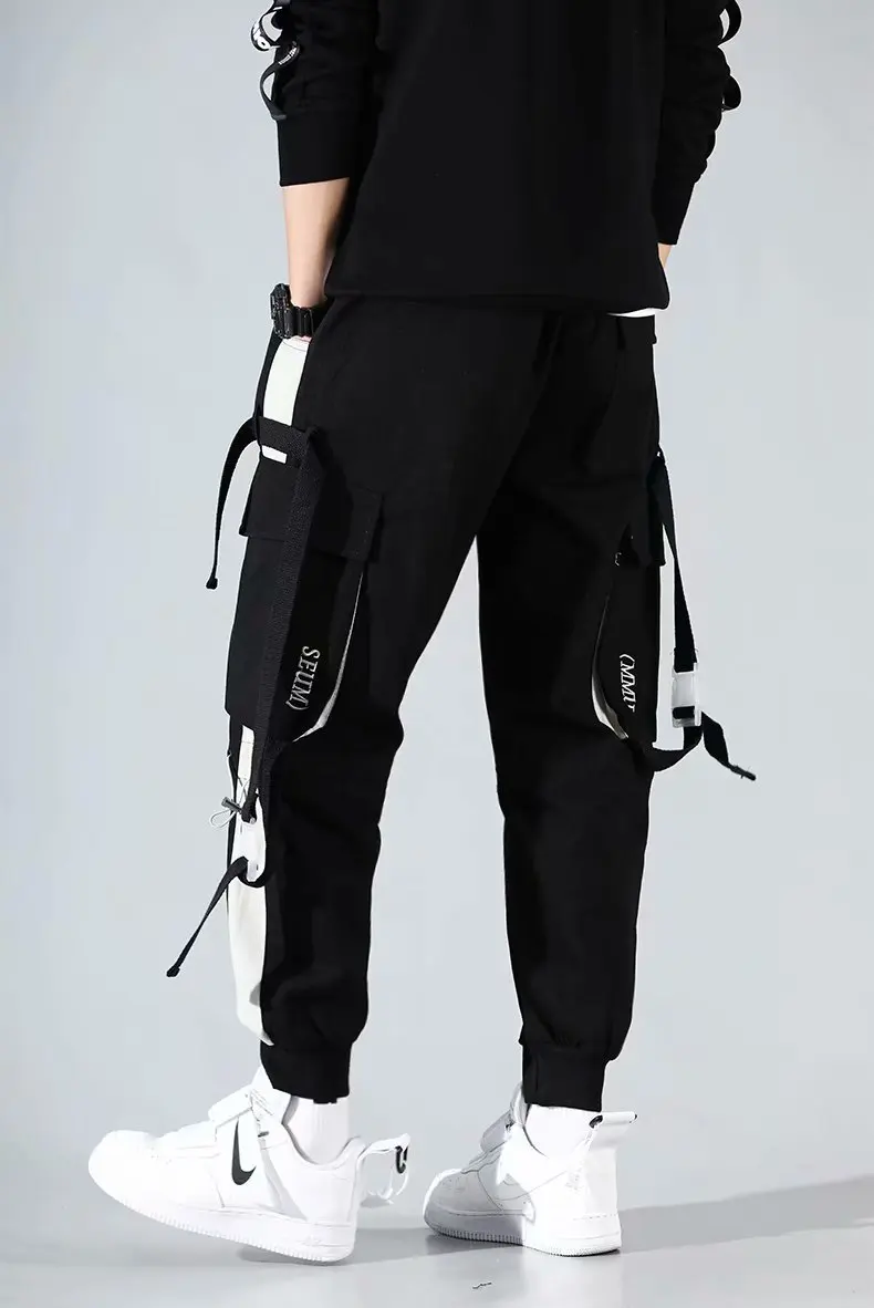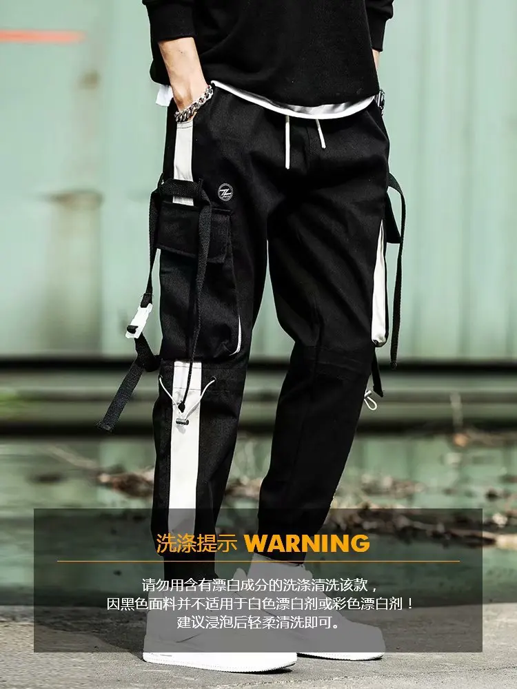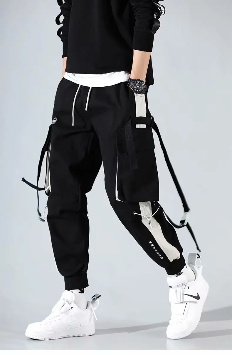 Брюки-карго мужские белые, в Корейском стиле, с лентами