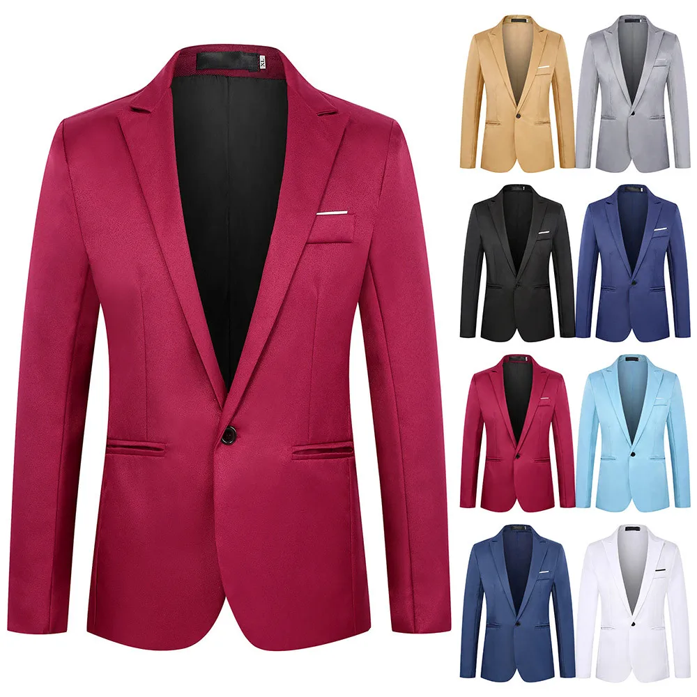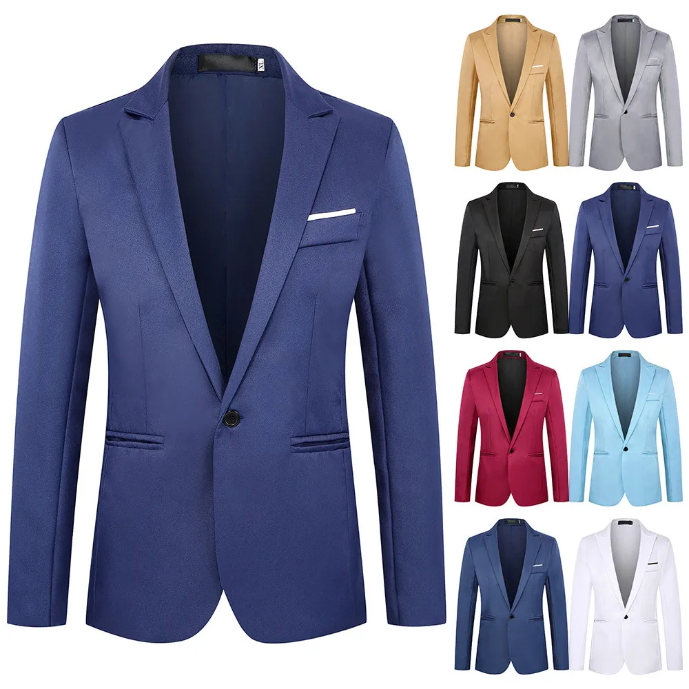 Мужской деловой пиджак с отложным воротником, жакет, блейзер для официальных встреч и вечерние Ринок, однотонная куртка, одежда для мужчин