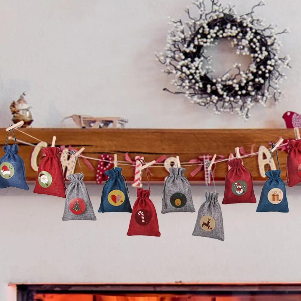 Подарочные пакеты на шнурке с календарем для нового года, подарочные пакеты для конфет на 24 дня с зажимами и деревянными знаками, Рождественская сумка с обратным отсчётом и обратным отсчетом 2022