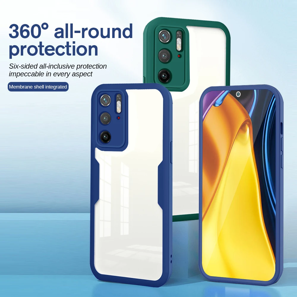 360 Полное покрытие для Xiaomi Poco M3 Pro Передняя Задняя крышка чехол для Redmi Note 10 10s Mi 11 X3 Lite Прозрачная защитная оболочка для телефона коробка