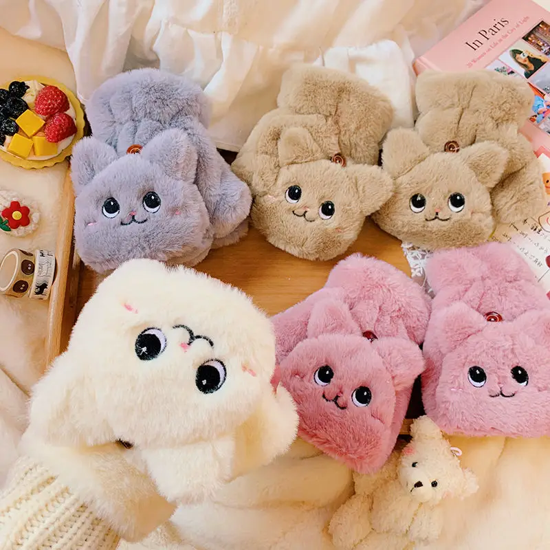 Милые женские плюшевые теплые перчатки для девочек варежки с мехом ...
