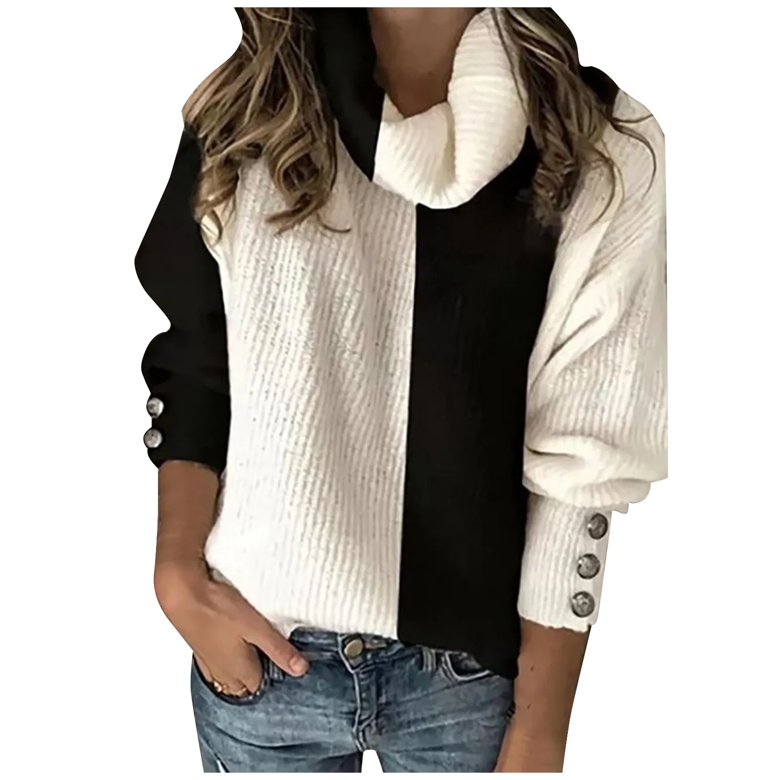 Женский трикотажный свитер на пуговицах, с V-образным вырезом