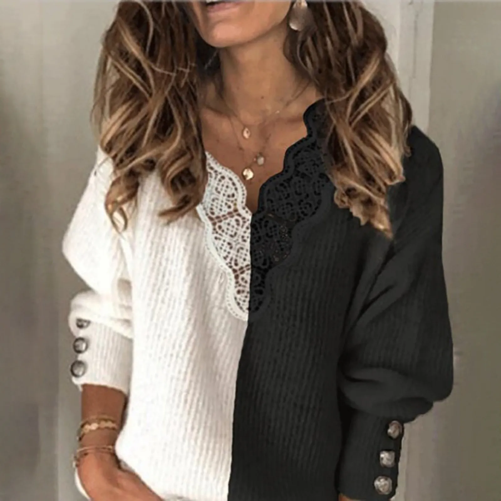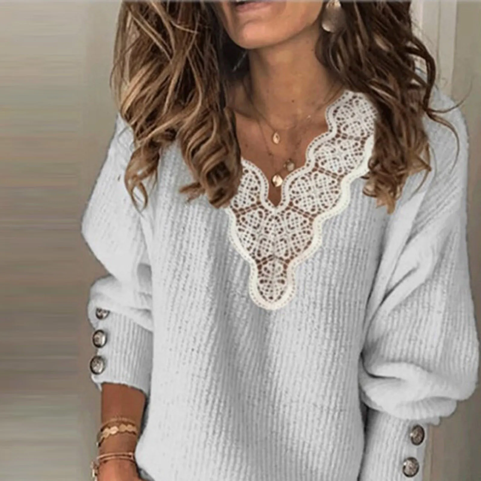 Женский Зимний пуловер Повседневный с V-образным вырезом, кружевной...