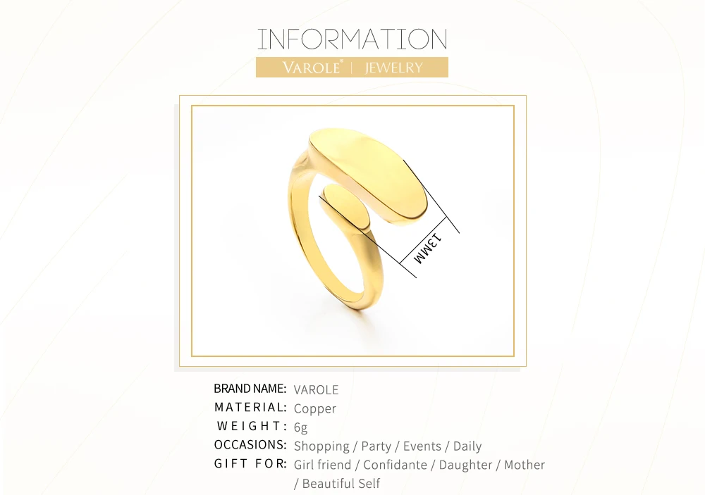 Женские Простые Плоские Кольца VAROLE, открытые кольца золотого цвета, в стиле панк, в минималистическом стиле, модные украшения, подарки