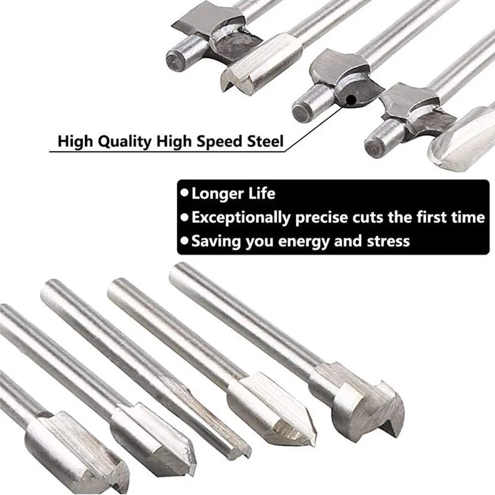Десять резцов различных форм и размеров, обычно используются на электрических триммеров для отделки дерева, фрезерования и другой обработки.