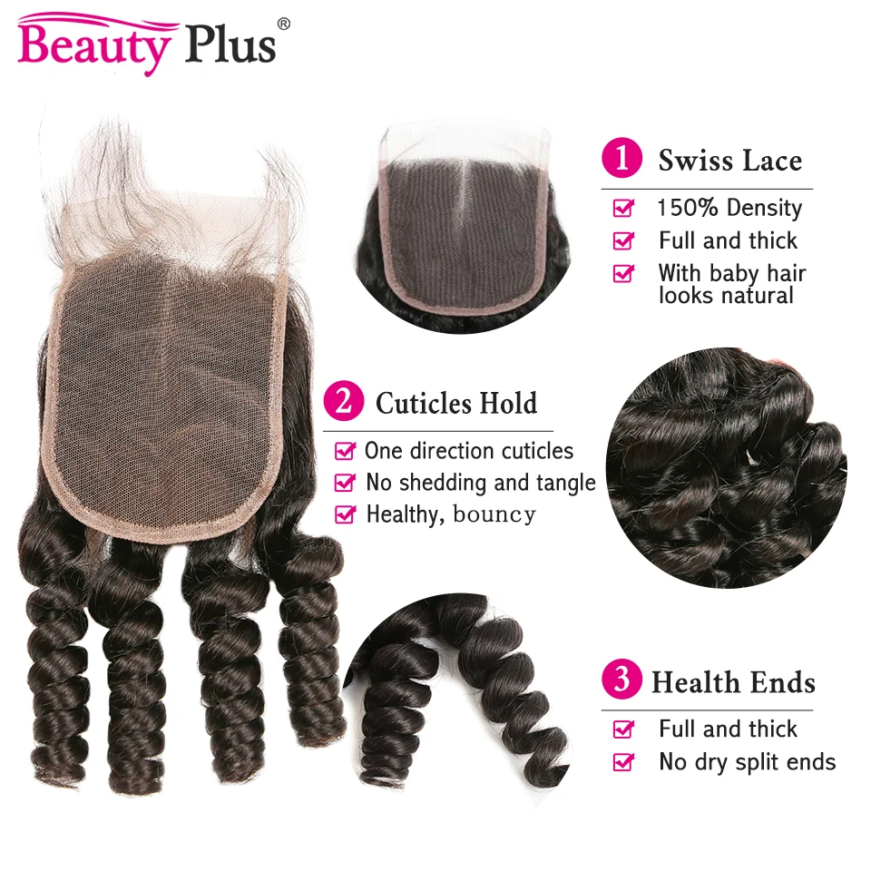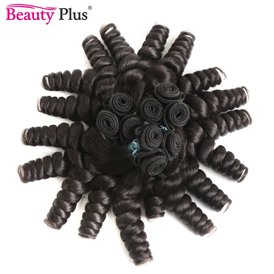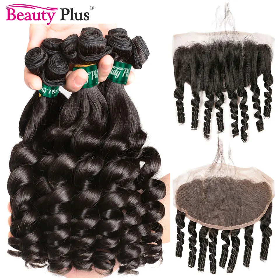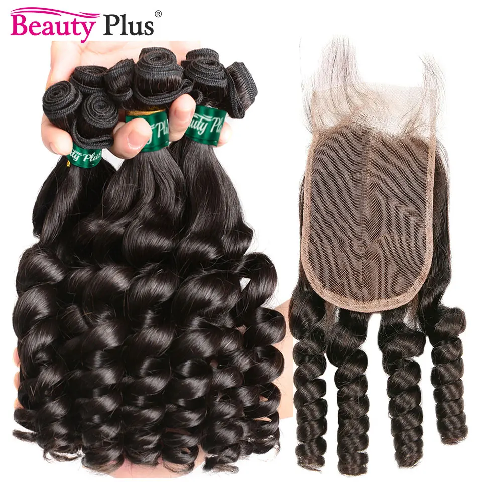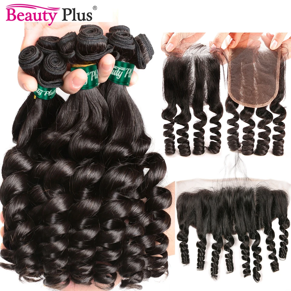 Бразильские кудрявые пучки Funmi с фронтальной Реми, человеческие волосы для наращивания, упругие кудрявые 3 4 пряди с 4x4 кружевными зажимами, Детские волосы