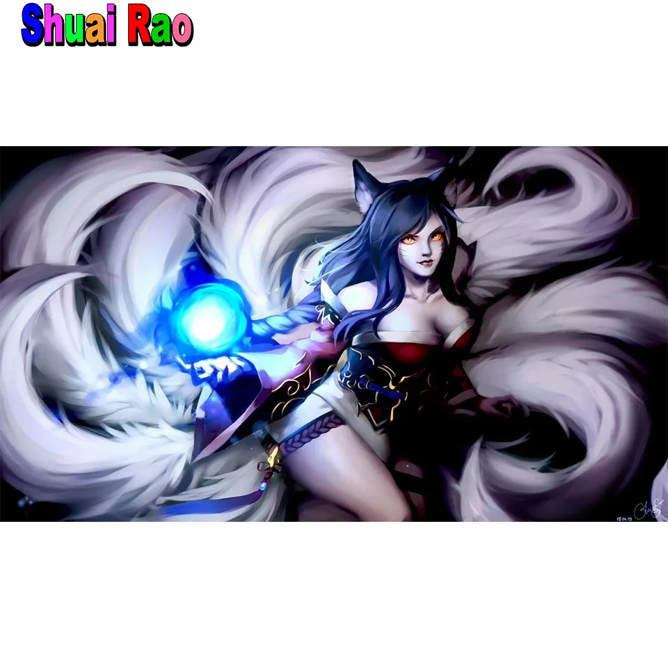 Фантазия кошка женщина 5D Сделай Сам, алмазная картина мозаика полное сверление аниме девять хвостов лиса Алмазная вышивка Алмазная стежка домашний декор