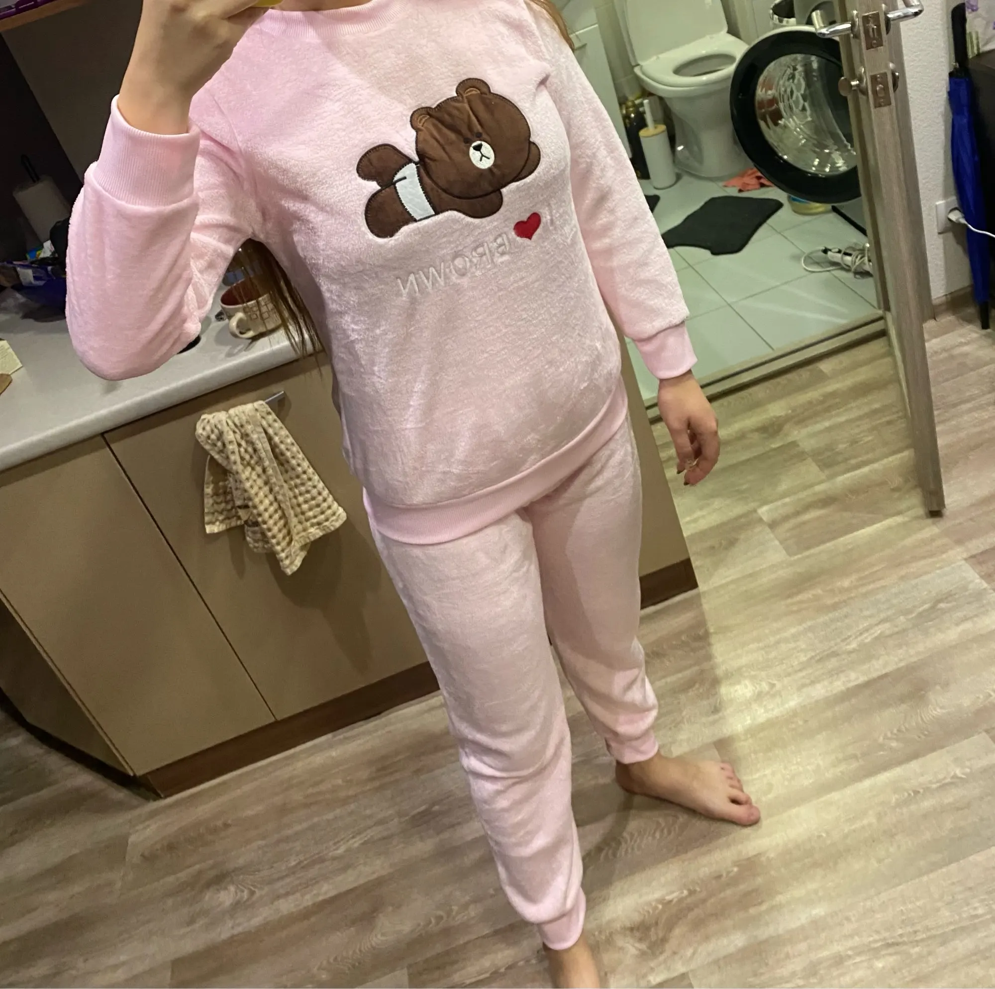 Теплые пижамы, женские зимние фланелевые удобные пижамные комплекты для женщин, новинка, толстые топы и брюки из 2 предметов с мультяшным рисунком